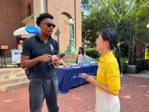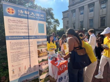 (Minghui.org) Pierwszy dzień roku akademickiego na Uniwersytecie Columbia w Nowym Jorku przypadł na 2 września 2025 roku. Przez pierwsze dwa dni kampus tętnił życiem, a grupy studentów rozstawiały stoiska, aby promować się i zapraszać studentów do dołączenia.