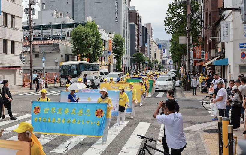 Praktykujący Falun Dafa maszerowali w Osace 14 września 2025 roku