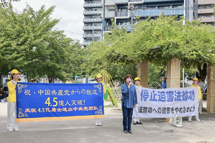 Pan Yoshinobu Kinoshita, radny miasta Osaka, przemówił podczas zgromadzenia przed marszem i zaapelował do Japończyków, by zwrócili uwagę na represje. „Będę nadal wspierał te działania w przyszłości. Mam nadzieję, że pewnego dnia wysiłki praktykujących przyniosą owoce, prześladowania się skończą, i wszyscy będą mogli praktykować swobodnie i wspólnie uczcić tę wielką chwilę” – powiedział.