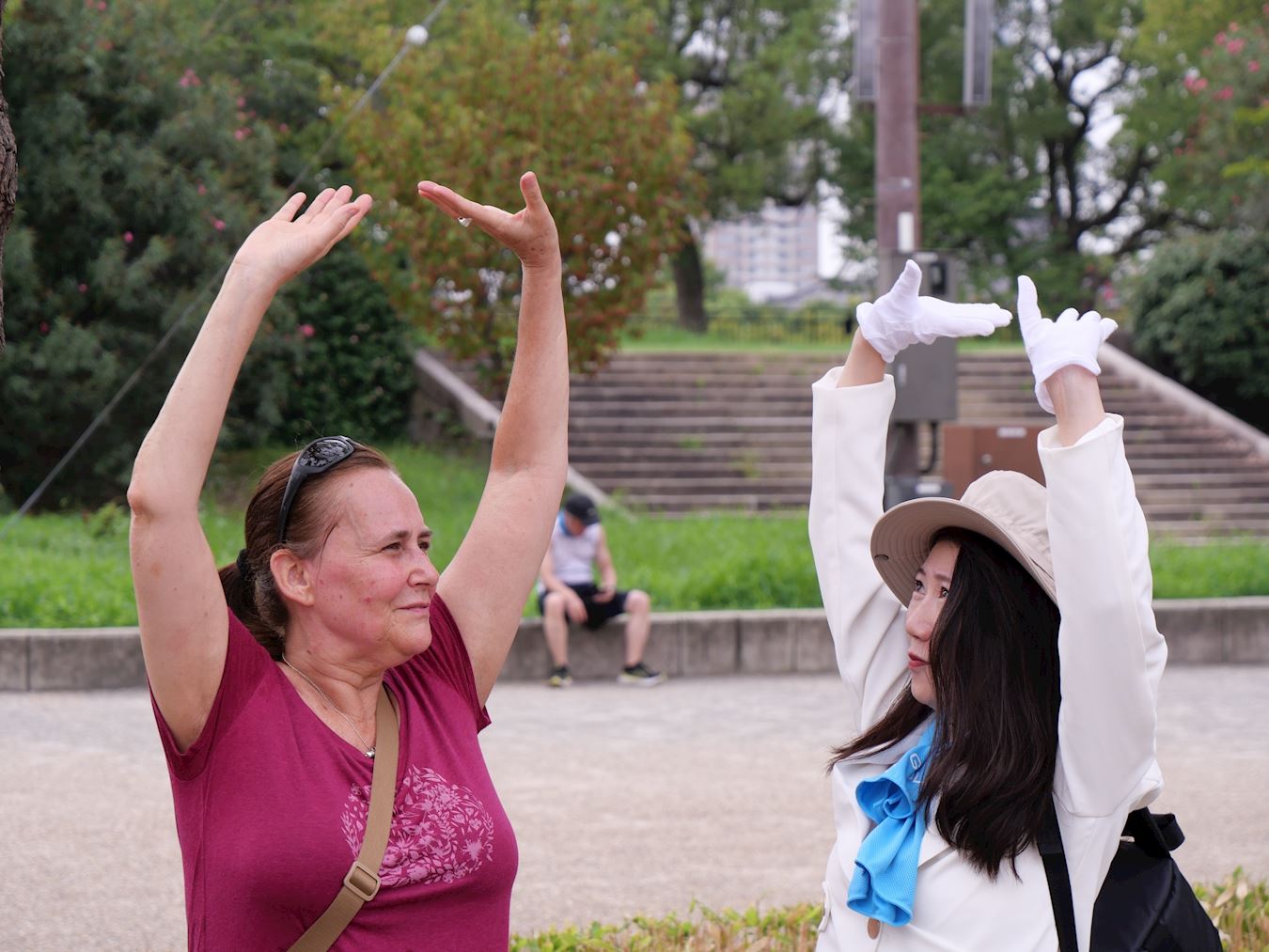 Przed marszem praktykujący podzielili się na małe grupy, aby wykonywać ćwiczenia w różnych popularnych miejscach turystycznych. Gdy Ron z Australii zobaczył grupę ćwiczących w parku przy Zamku Osaka, poprosił o więcej informacji i powiedział, że zgadza się z zasadami Prawdy-Życzliwości-Cierpliwości.