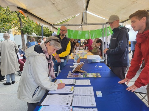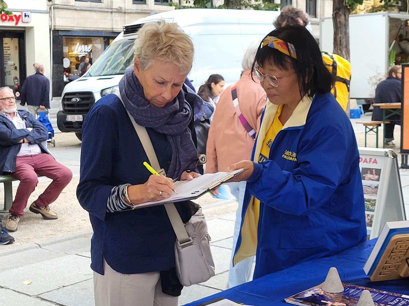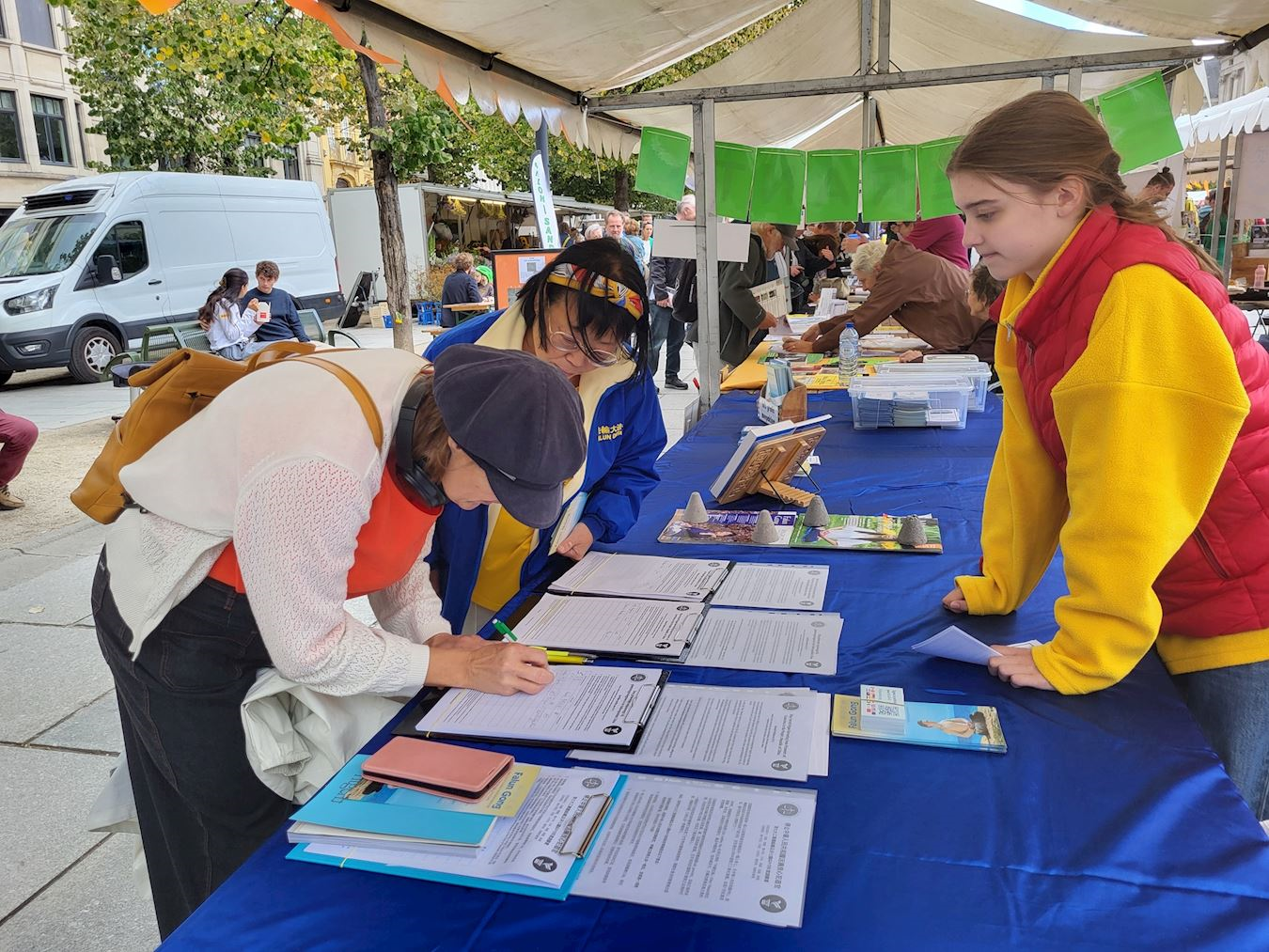 Praktykujący Falun Dafa zbierają podpisy pod petycją podczas wydarzenia w Gandawie