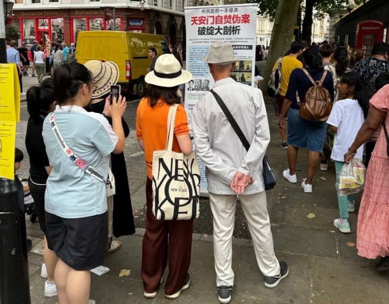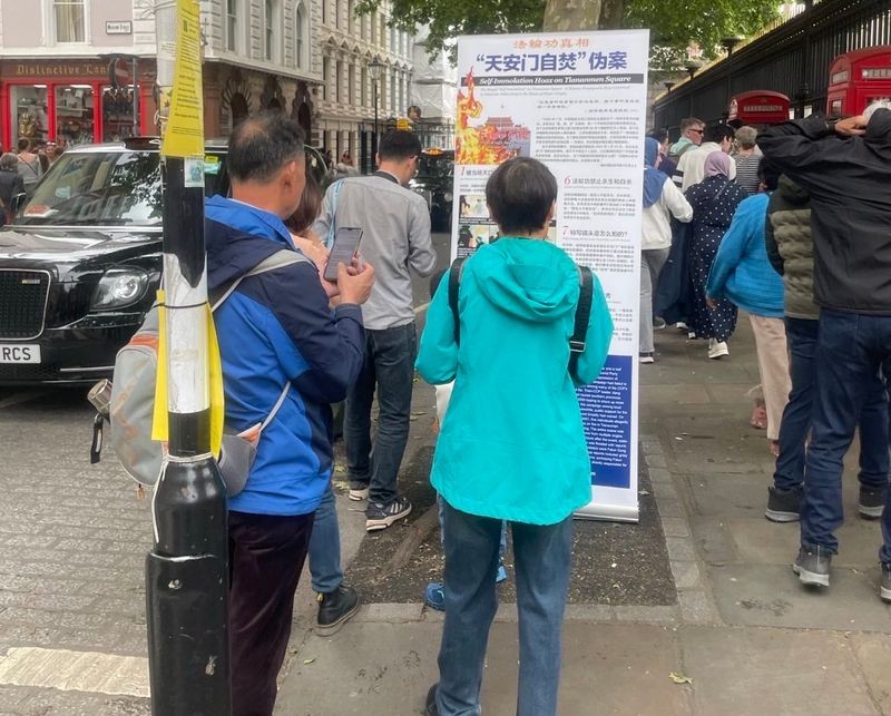 (Minghui.org) Muzeum Brytyjskie to znana na całym świecie atrakcja turystyczna. Praktykujący Falun Dafa (Falun Gong) przebywają tam przez cały rok i opowiadają ludziom o prześladowaniach ze strony Komunistycznej Partii Chin (KPCh). Od wielu lat praktykujący rozmawiają z Chińczykami i odpowiadają na ich pytania przed muzeum, pomagając im dostrzec kłamstwa KPCh.