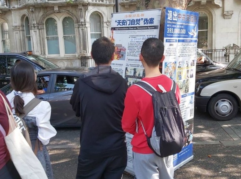 Przez lata, przed Muzeum Brytyjskim w Londynie, wielu chińskich turystów dowiedziało się o prześladowaniach. Niektórzy natychmiast wyrzekli się KPCh i powiązanych z nią organizacji, podczas gdy inni zabrali materiały informacyjne do domu, aby je przeczytać. Niektórzy ubolewali, że nigdy nie widzieli tych informacji w Chinach i usłyszeli o nich po raz pierwszy dopiero podczas podróży zagranicznych.