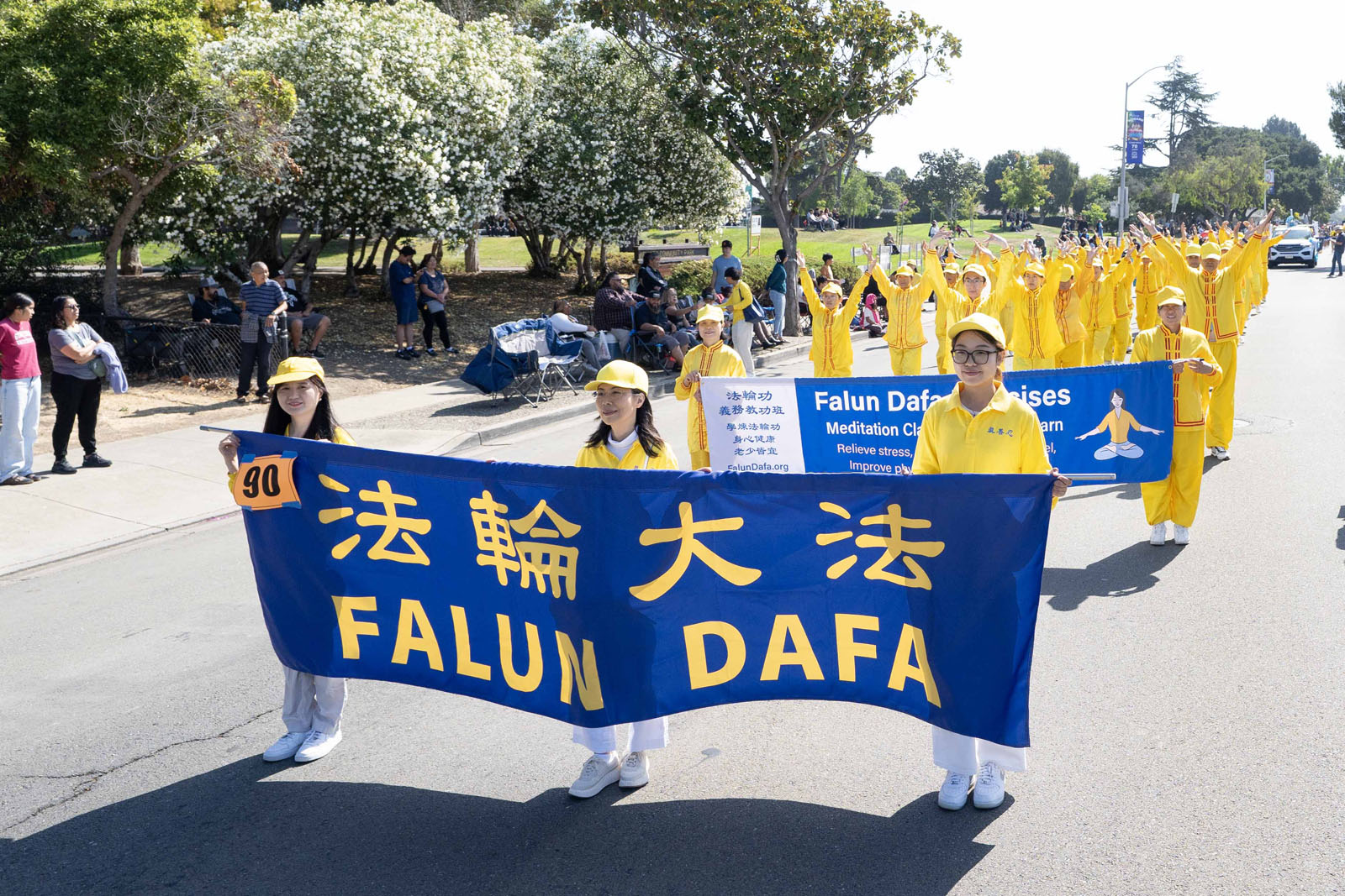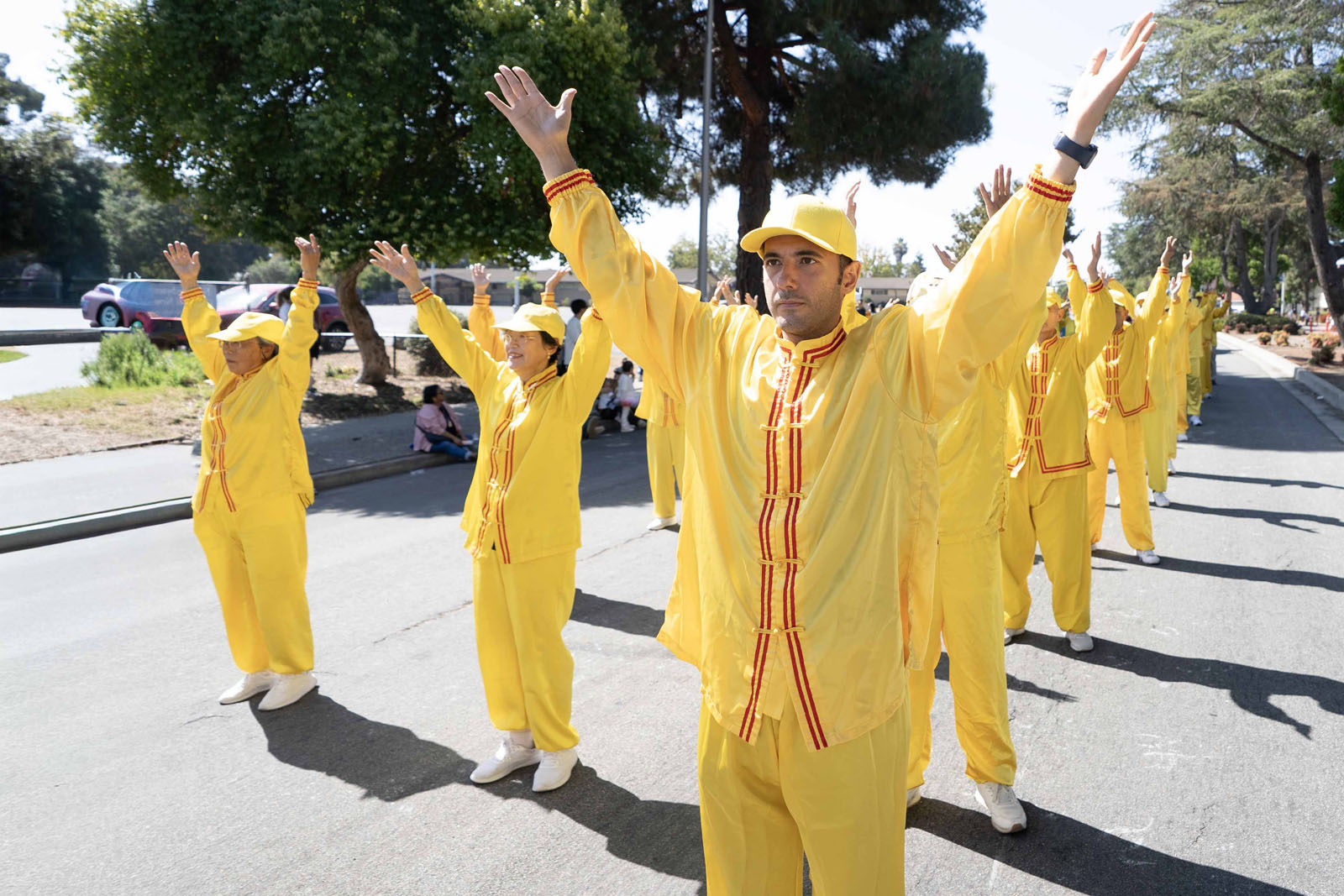 Wstęp na paradę Falun Gong obejmował duże banery i praktykujących w żółtych strojach do ćwiczeń, prezentujących ćwiczenia. Wiele osób podążało za nimi, wykonując swoje ruchy. Po paradzie wiele osób wyraziło zainteresowanie pogłębieniem wiedzy o Falun Gong, a inni pytali, gdzie można nauczyć się ćwiczeń.