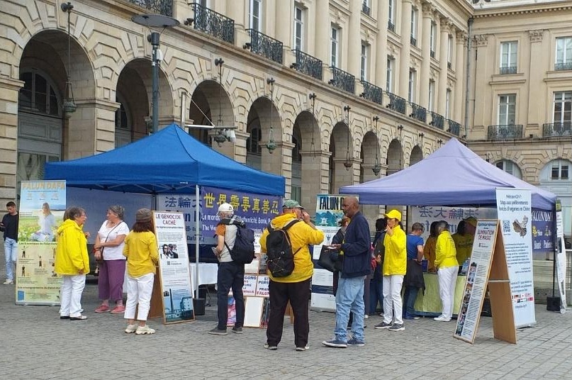 (Minghui.org) Praktykujący Falun Dafa zorganizowali wydarzenie na Placu Republiki w Rennes, stolicy Bretanii, 20 września 2025 r. Przedstawili praktykę Falun Dafa (znaną również jako Falun Gong), zaprezentowali ćwiczenia Dafa i podnieśli świadomość na temat prześladowań Falun Dafa przez Komunistyczną Partię Chin (KPCh) i jej narastających międzynarodowych represji.