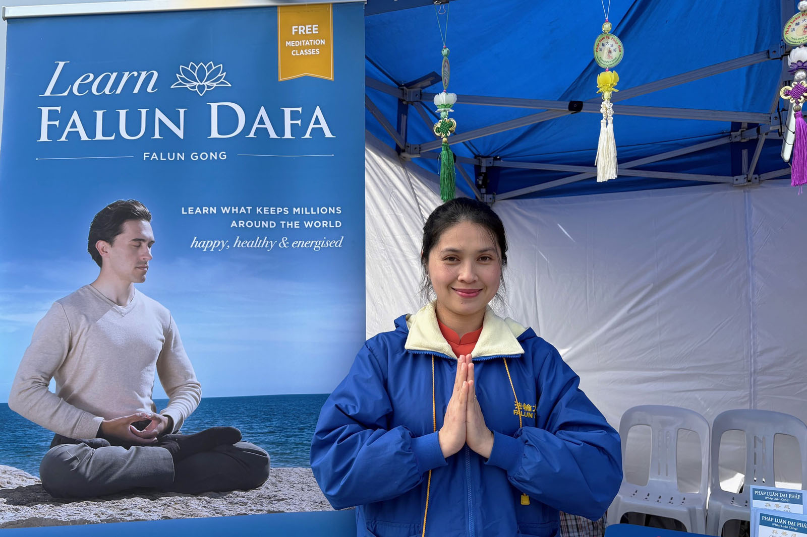 Powiedziała: „Moim pragnieniem jest dzielenie się tradycyjną kulturą azjatycką i uniwersalnymi wartościami Falun Dafa, takimi jak Prawda, Życzliwość i Cierpliwość, ze społecznością, aby rodziny i dzieci mogły z nich skorzystać. Praktykujący Falun Dafa z Melbourne udzielili bezinteresownej pomocy”.