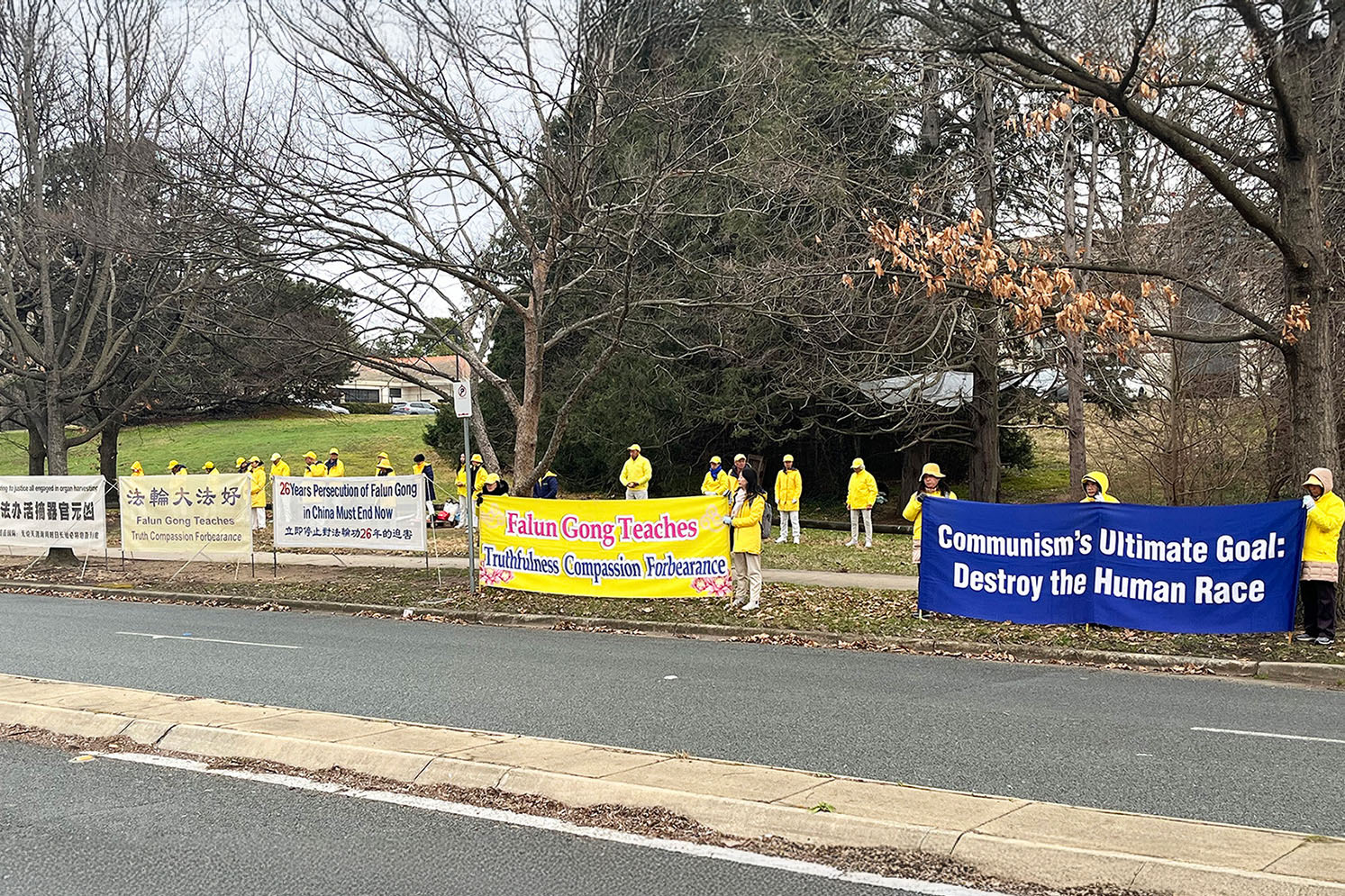 Podnoszenie świadomości na temat prześladowań prowadzonych przez Komunistyczną Partię Chin przed ambasadą Chin w Canberze w dniach 1 i 3 września 2025 r.