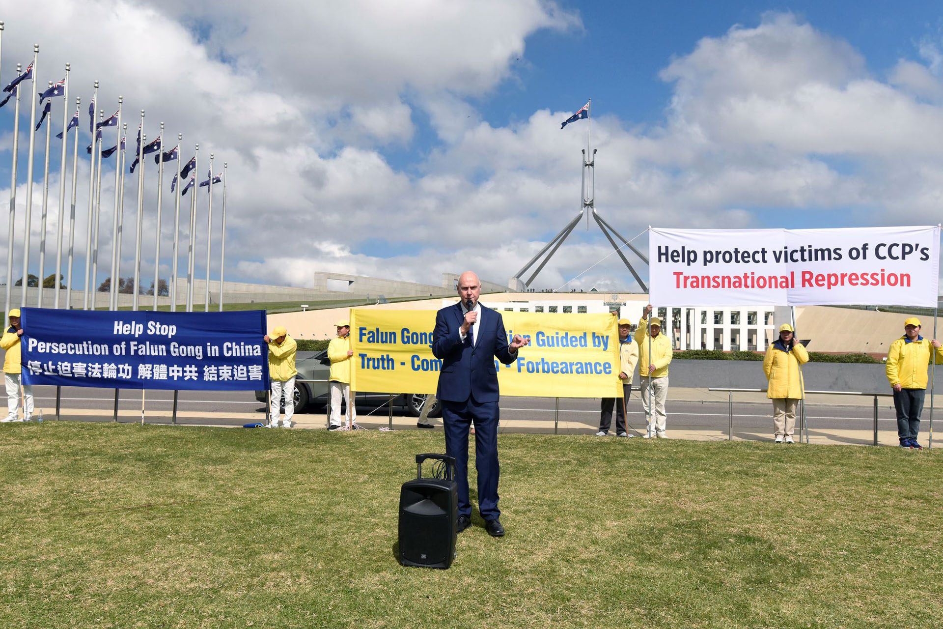 John Deller, rzecznik Australijskiego Stowarzyszenia Falun Dafa, oświadczył, że oprócz społeczności Falun Dafa, społeczność tybetańska, Ujgurzy, mieszkańcy Hongkongu, a nawet Tajwańczycy, również Australijczycy doświadczają represji transnarodowych. „Każdy poseł doświadcza represji transnarodowych ze strony KPCh, ale może jeszcze tego nie dostrzegać” – powiedział. „Jednym z naszych dzisiejszych zadań jest pomóc posłom zrozumieć, że rząd Australii i posłowie muszą reprezentować naród australijski, podejmować konkretne działania i jasno wskazywać, że pierwotną przyczyną represji transnarodowych jest KPCh”.