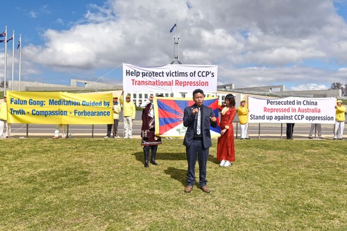 Kilku praktykujących Falun Dafa (Falun Gong) przemawiało na wiecu i opisało, jak osobiście doświadczyli prześladowań ze strony KPCh w Australii lub byli świadkami, jak agenci KPCh wywierają naciski na różne grupy australijskiej społeczności. Wydarzenie zyskało również poparcie społeczności tybetańskiej, a przedstawiciel tybetańskiego rządu na uchodźstwie wziął w nim udział, aby wyrazić swoje poparcie i wspólnie zaapelować do wybranych australijskich parlamentarzystów o uznanie narastających prześladowań i represji ze strony KPCh, które podważają wolność i suwerenność Australii.