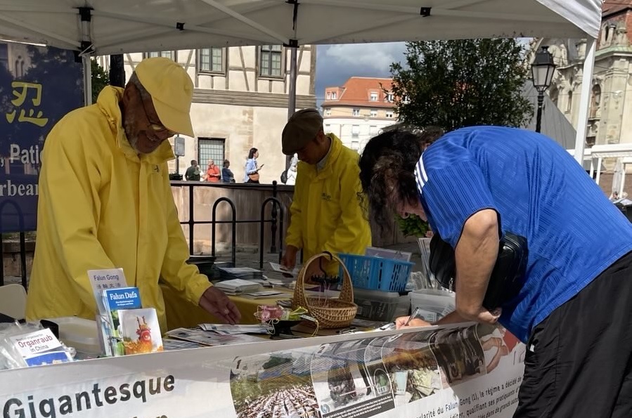 (Minghui.org) Praktykujący Falun Dafa zorganizowali wydarzenia promujące praktykę i podnoszące świadomość społeczną na temat trwających prześladowań w Chinach w różnych miastach Francji. 30 sierpnia 2025 roku praktykujący przedstawili mieszkańcom Nantes, Rouen i Colmar korzyści zdrowotne płynące z tej praktyki. Zademonstrowali pięć ćwiczeń medytacyjnych i zebrali podpisy pod petycją wzywającą do zakończenia 26-letnich prześladowań Falun Dafa przez Komunistyczną Partię Chin (KPCh).