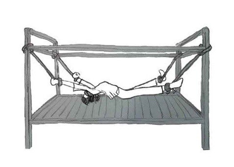 W pomieszczeniu znajdują się łoża śmierci z kajdankami na nadgarstki i kostki, które rozciągają praktykujących w pozycji z rozpostartymi ramionami. Praktykujący, którzy odmawiają transformacji, są przywiązywani do tych łóżek i rozciągani, aż nie będą mogli się ruszyć. Jeśli nadal odmawiają wyrzeczenia się wiary, są jednocześnie rażeni wieloma pałkami elektrycznymi. Usta mają zaklejone taśmą, aby przechodnie nie słyszeli ich krzyków.