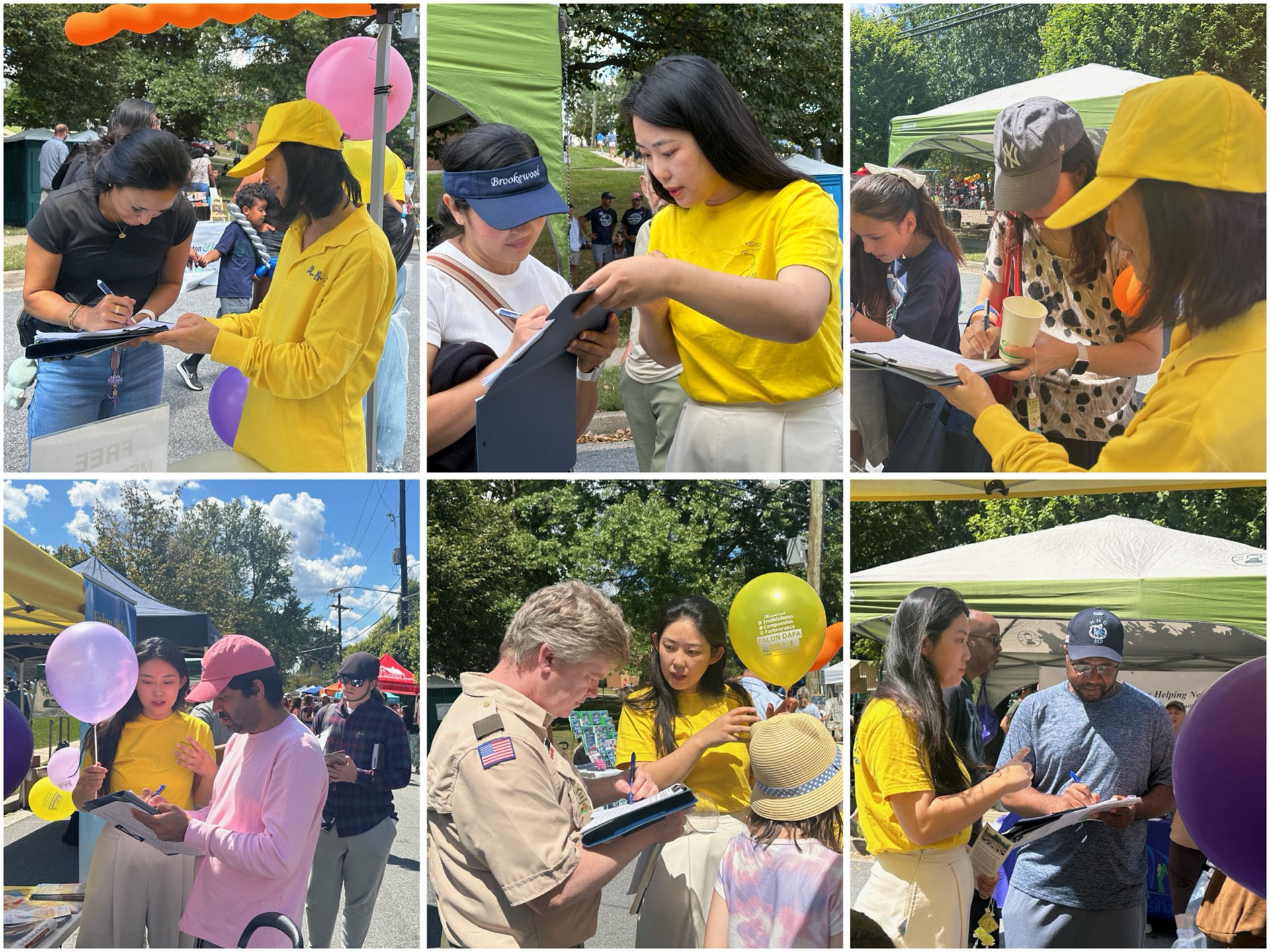 (Minghui.org) Praktykujący Falun Dafa z okolic Waszyngtonu uczestniczyli w paradzie i obchodach Święta Pracy w Kensington w stanie Maryland 1 września 2025 roku. Wielu mieszkańców podziękowało im za przekazanie przesłania: „Świat potrzebuje Prawdy, Życzliwości i Cierpliwości”. Niektórzy, którzy wcześniej słyszeli o Falun Dafa, zostawili swoje dane kontaktowe praktykującym i wyrazili chęć dowiedzenia się więcej o tej tradycyjnej praktyce kultywacji ciała i umysłu. Wiele osób podpisało petycję wzywającą do zakończenia prześladowań Falun Dafa przez Komunistyczną Partię Chin (KPCh).