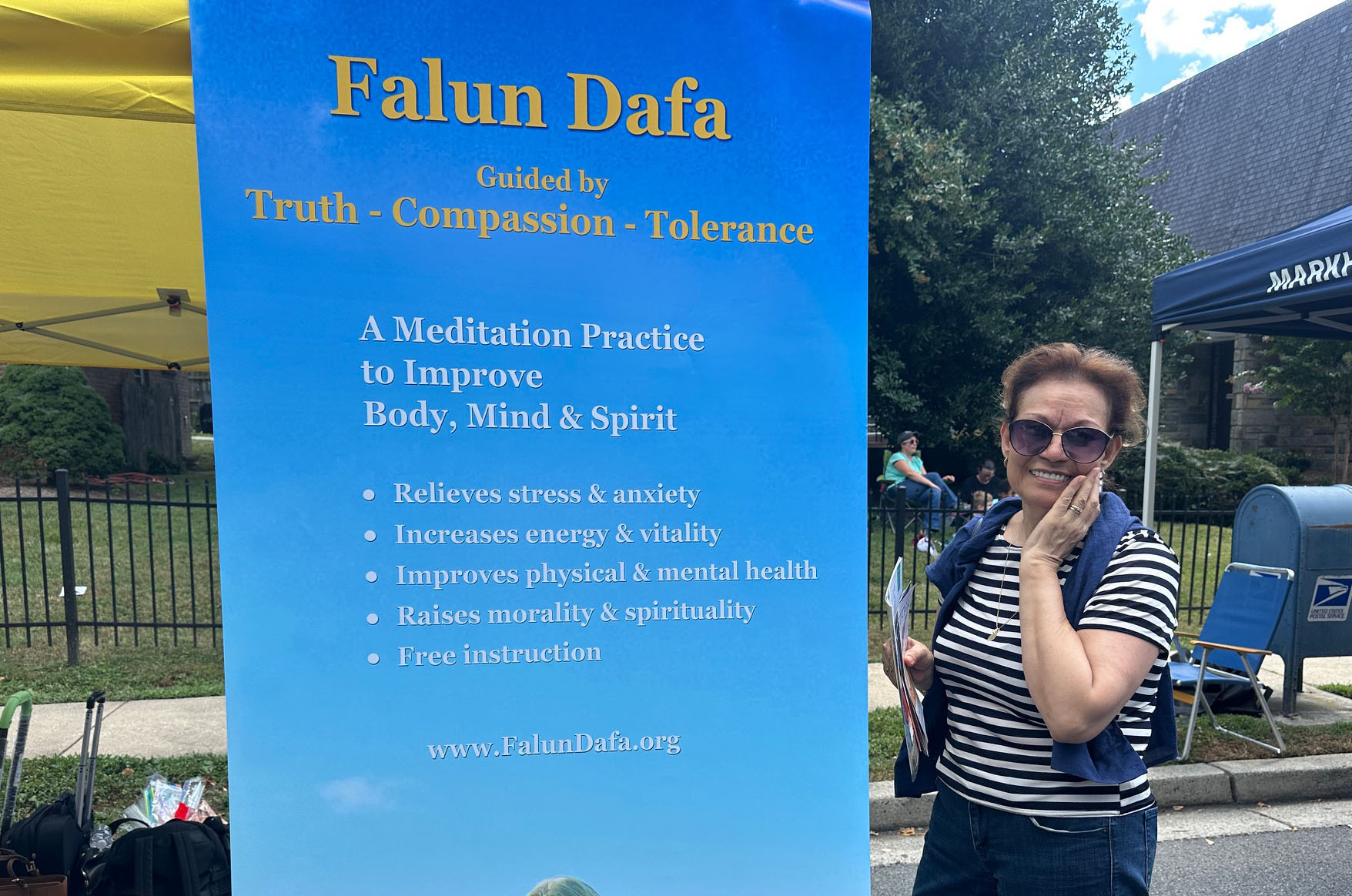 Kiedy Mayra zobaczyła stoisko Falun Dafa podczas obchodów dnia pracy w Kensington, otrzymała egzemplarz ulotki wprowadzającej, cotygodniowej publikacji Minghui.org i innych powiązanych materiałów. Powiedziała, że szuka praktyki medytacyjnej i poczuła, że trafiła we właściwy moment. Wymieniła się danymi kontaktowymi z praktykującym i powiedziała, że ma nadzieję nauczyć się praktykować Falun Dafa.