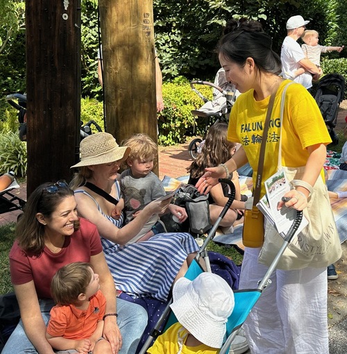 Po paradzie wiele osób zatrzymało się przy stoisku Falun Dafa i przeczytało ulotki wyjaśniające prawdę.