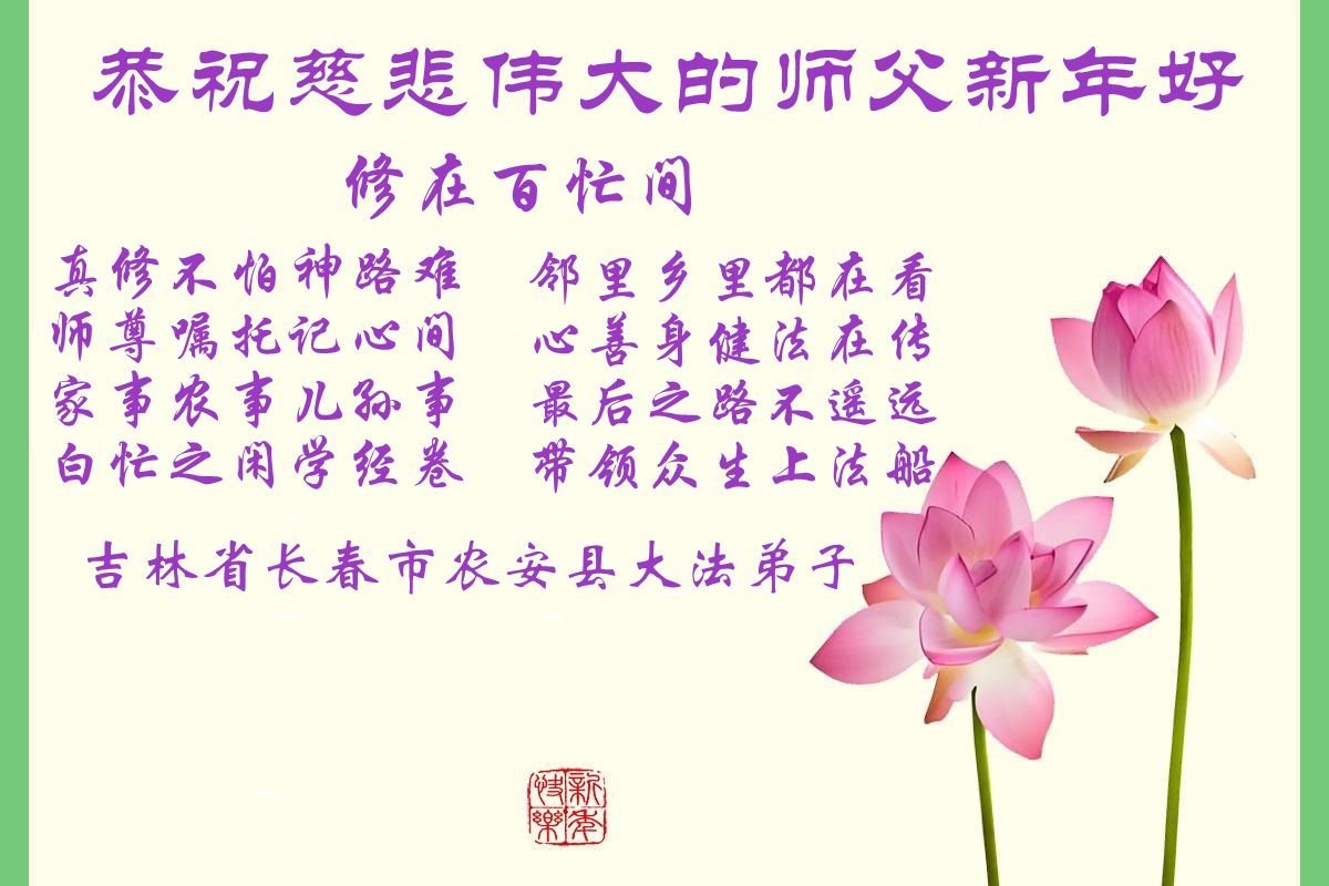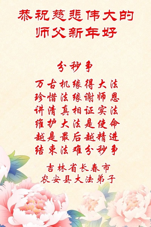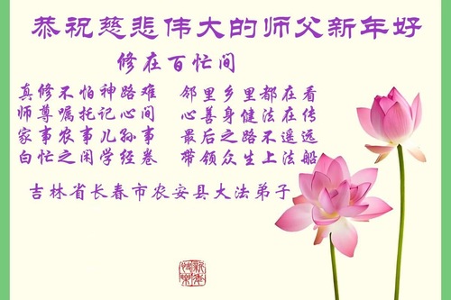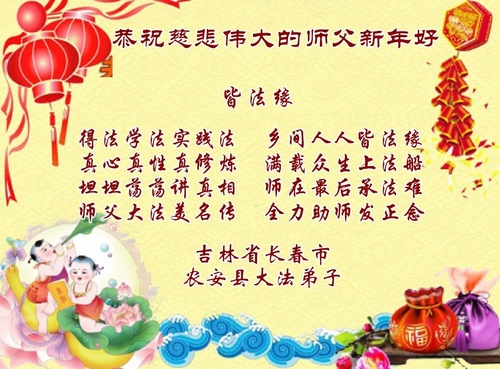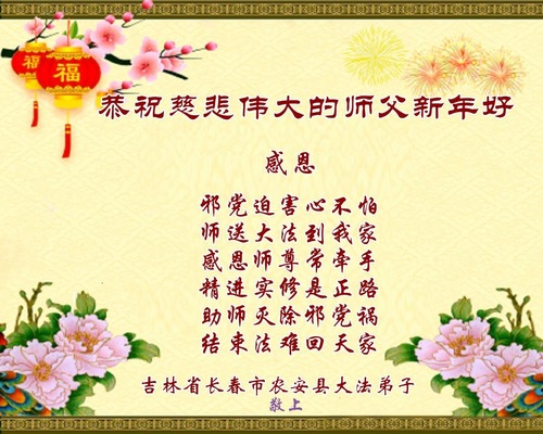 Praktykujący Falun Dafa z miasta Changchun z szacunkiem składają Mistrzowi Li Hongzhi życzenia Szczęśliwego Nowego Roku (112 pozdrowień)