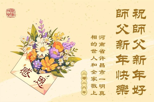 (Minghui.org) Wraz z nadejściem roku 2026, wielu zwolenników Falun Dafa przesłało serdeczne pozdrowienia założycielowi praktyki, Mistrzowi Li Hongzhi, z życzeniami Szczęśliwego Nowego Roku.