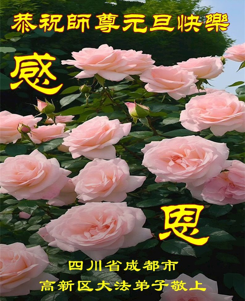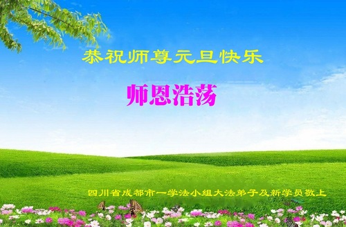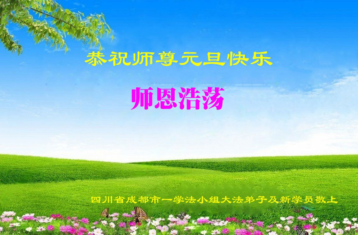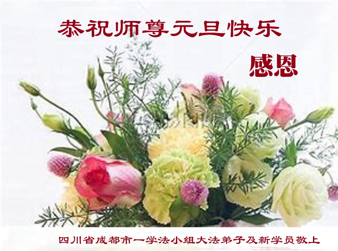 Praktykujący z grupy studyjnej Fa w mieście Chengdu w prowincji Syczuan, wraz z nowymi praktykującymi, z szacunkiem życzą Mistrzowi Szczęśliwego Nowego Roku!