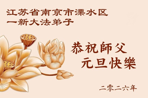 Nowy praktykujący z dystryktu Lishui w Nankinie w prowincji Jiangsu z szacunkiem życzy Mistrzowi Szczęśliwego Nowego Roku!