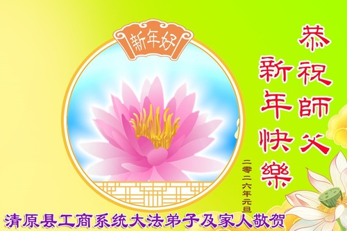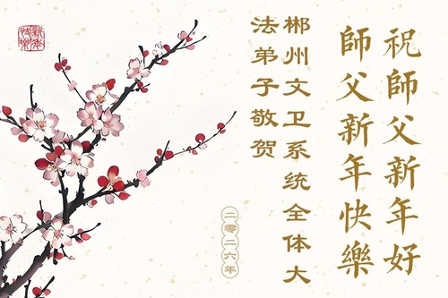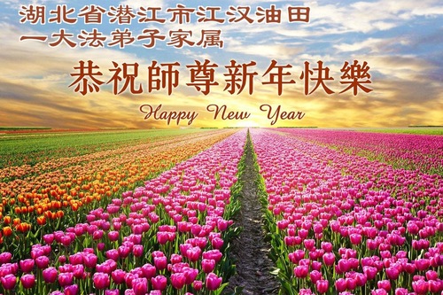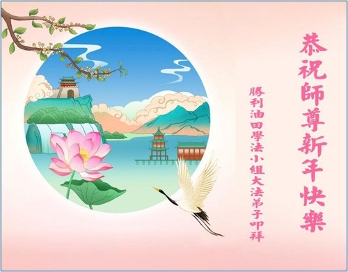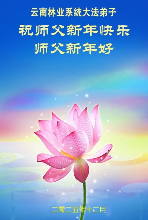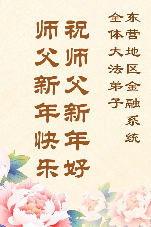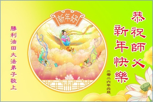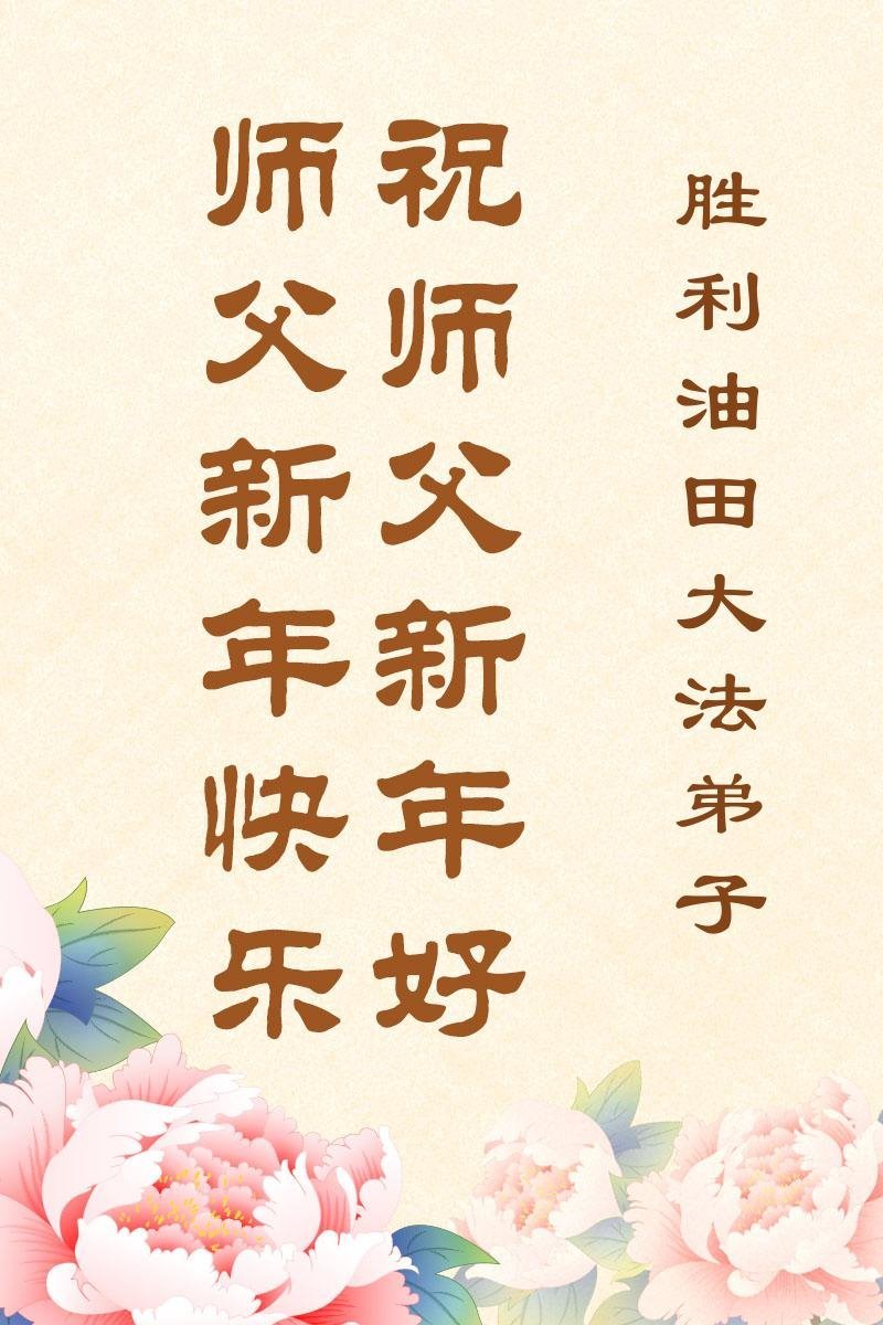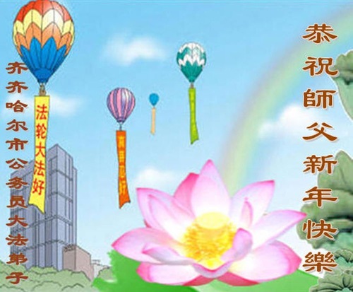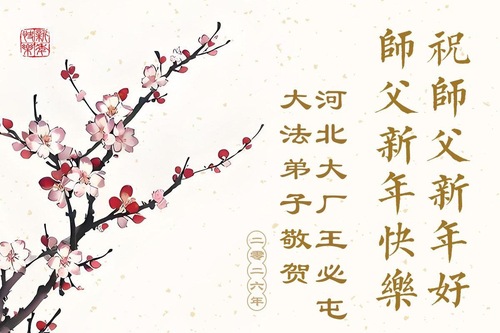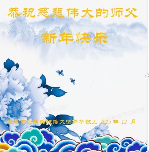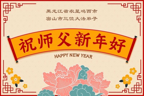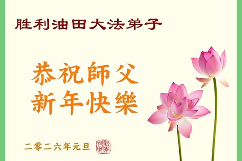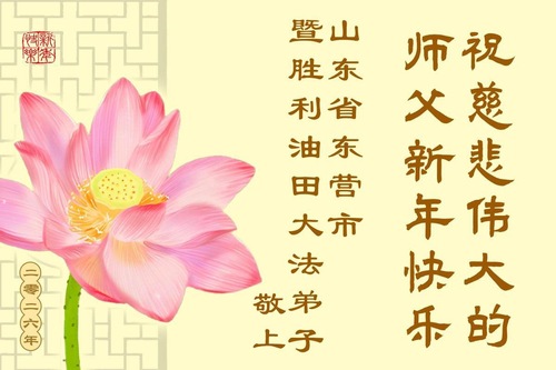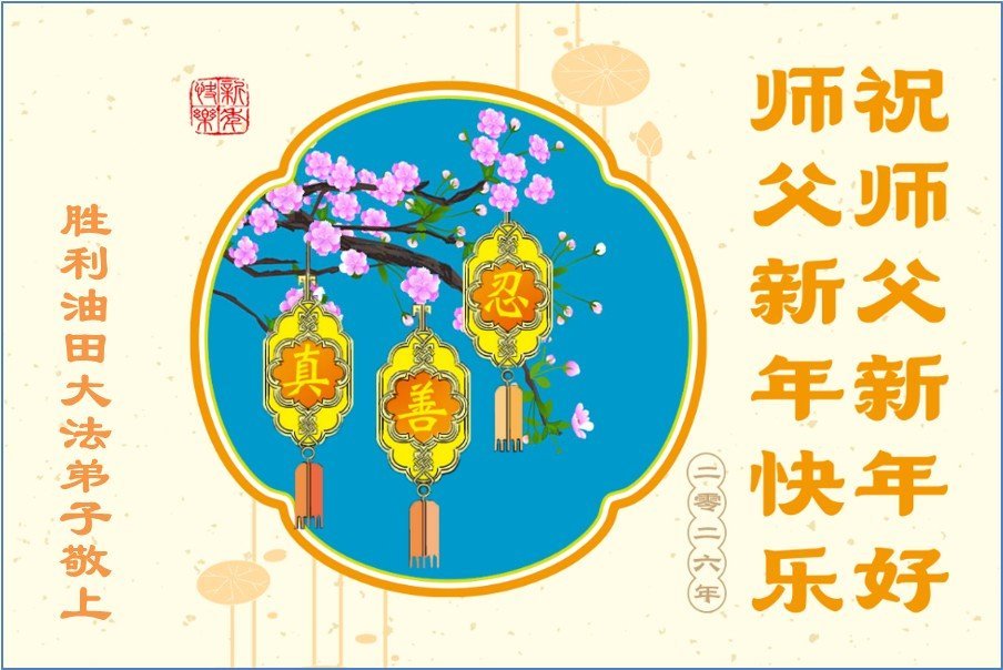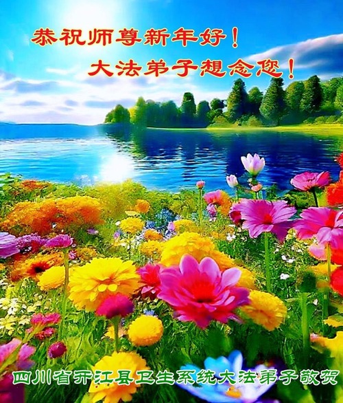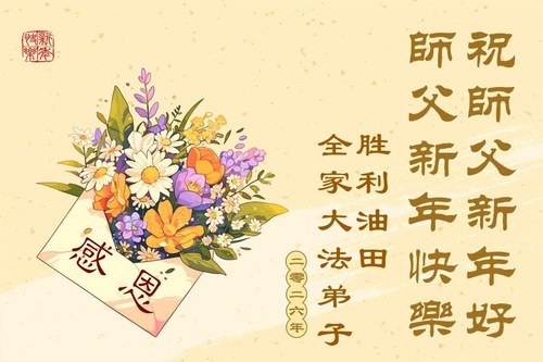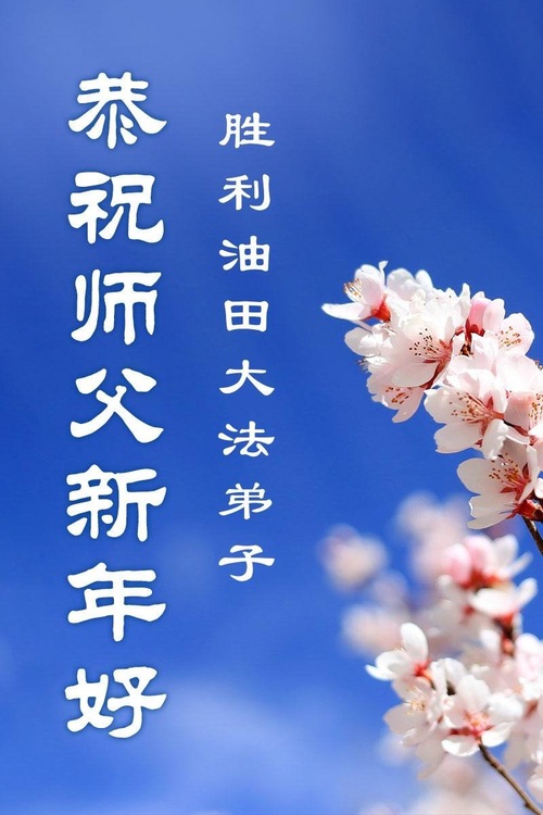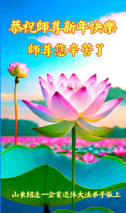 Praktykujący, emerytowany pracownik przedsiębiorstwa w mieście Yantai w prowincji Szantung, napisał: „Mistrzu, ciężko pracujesz! Nadchodzi nowy rok. W minionym roku, aby pomóc uczniom w doskonaleniu się i zbawić więcej czujących istot, współczujący Mistrz zniósł wiele, czego nie jesteśmy w stanie sobie wyobrazić. Nie możemy odwdzięczyć się Mistrzowi za Jego bezgraniczną łaskę. Mistrz nie chce, abyśmy Mu się odwdzięczali – zamiast tego pragnie, abyśmy pilnie kultywowali. Nie możemy zawieść Mistrza, ponieważ tak ogromnie cierpiał. W nowym roku będziemy podążać za Dafa i stanowczo wymagać od siebie, aby nie odpuszczać ani nie relaksować się. Zrobimy te trzy rzeczy dobrze i wypełnimy naszą historyczną, wielką misję”.