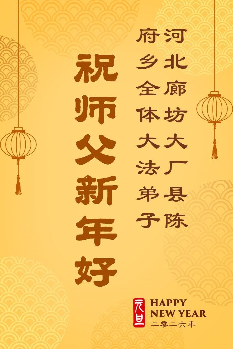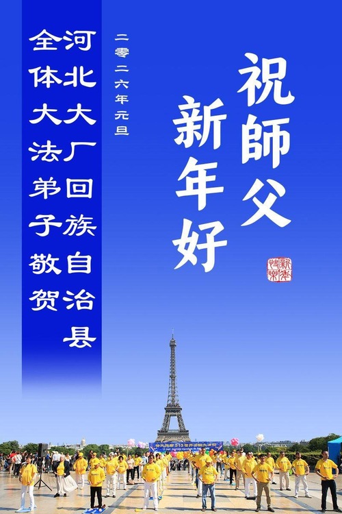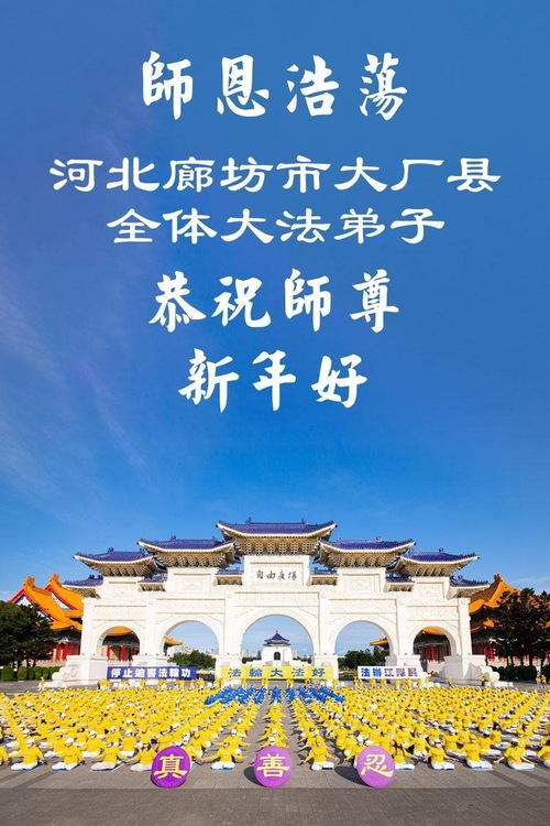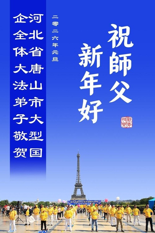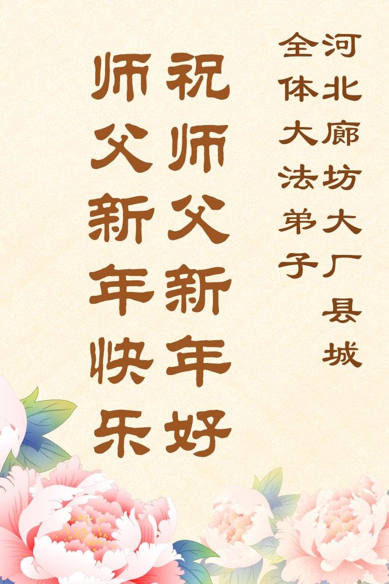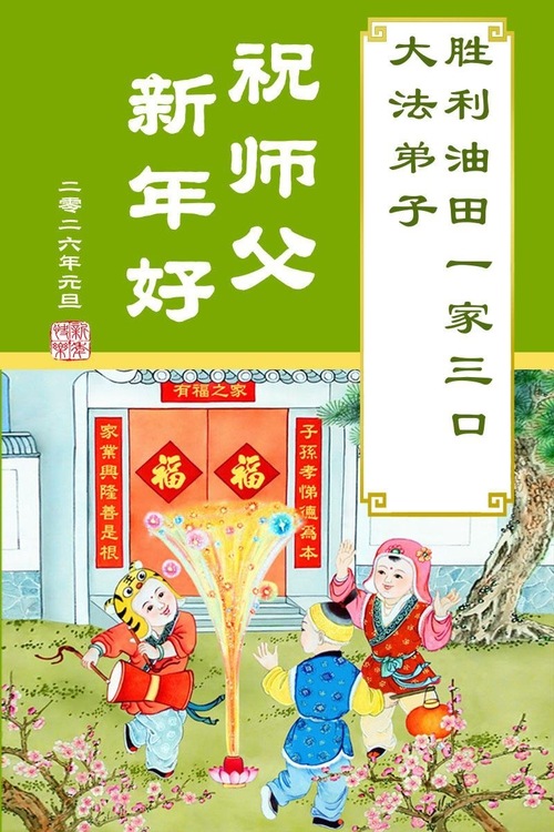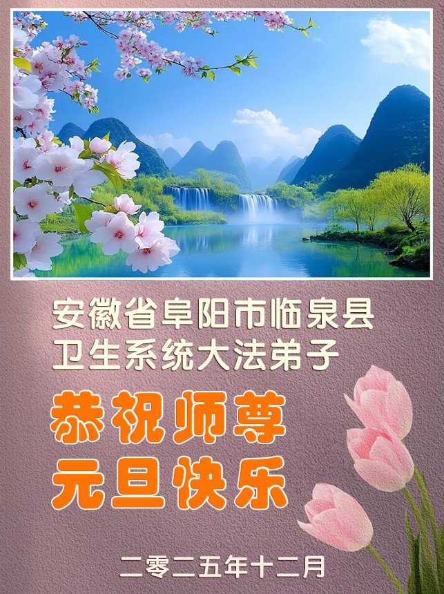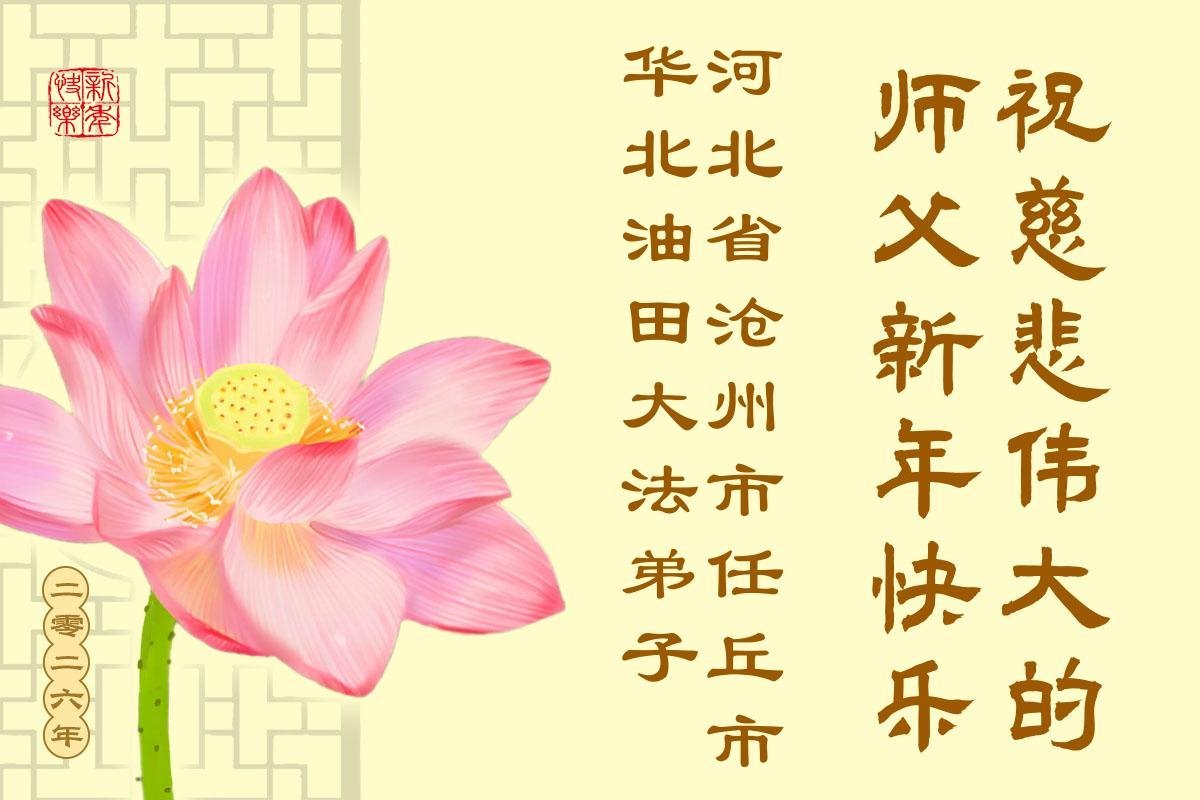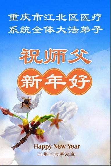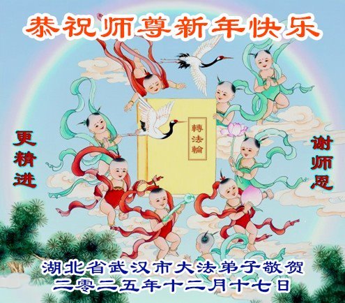 Praktykujący, emerytowany pracownik przedsiębiorstwa w mieście Yantai w prowincji Szantung, napisał: „Mistrzu, ciężko pracujesz! Nadchodzi nowy rok. W minionym roku, aby pomóc uczniom w doskonaleniu się i zbawić więcej czujących istot, współczujący Mistrz zniósł wiele, czego nie jesteśmy w stanie sobie wyobrazić. Nie możemy odwdzięczyć się Mistrzowi za Jego bezgraniczną łaskę. Mistrz nie chce, abyśmy Mu się odwdzięczali – zamiast tego pragnie, abyśmy pilnie kultywowali. Nie możemy zawieść Mistrza, ponieważ tak ogromnie cierpiał. W nowym roku będziemy podążać za Dafa i stanowczo wymagać od siebie, aby nie odpuszczać ani nie relaksować się. Zrobimy te trzy rzeczy dobrze i wypełnimy naszą historyczną, wielką misję”.
