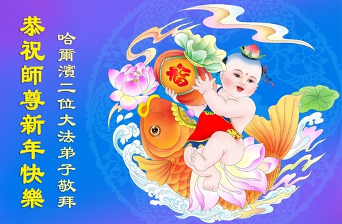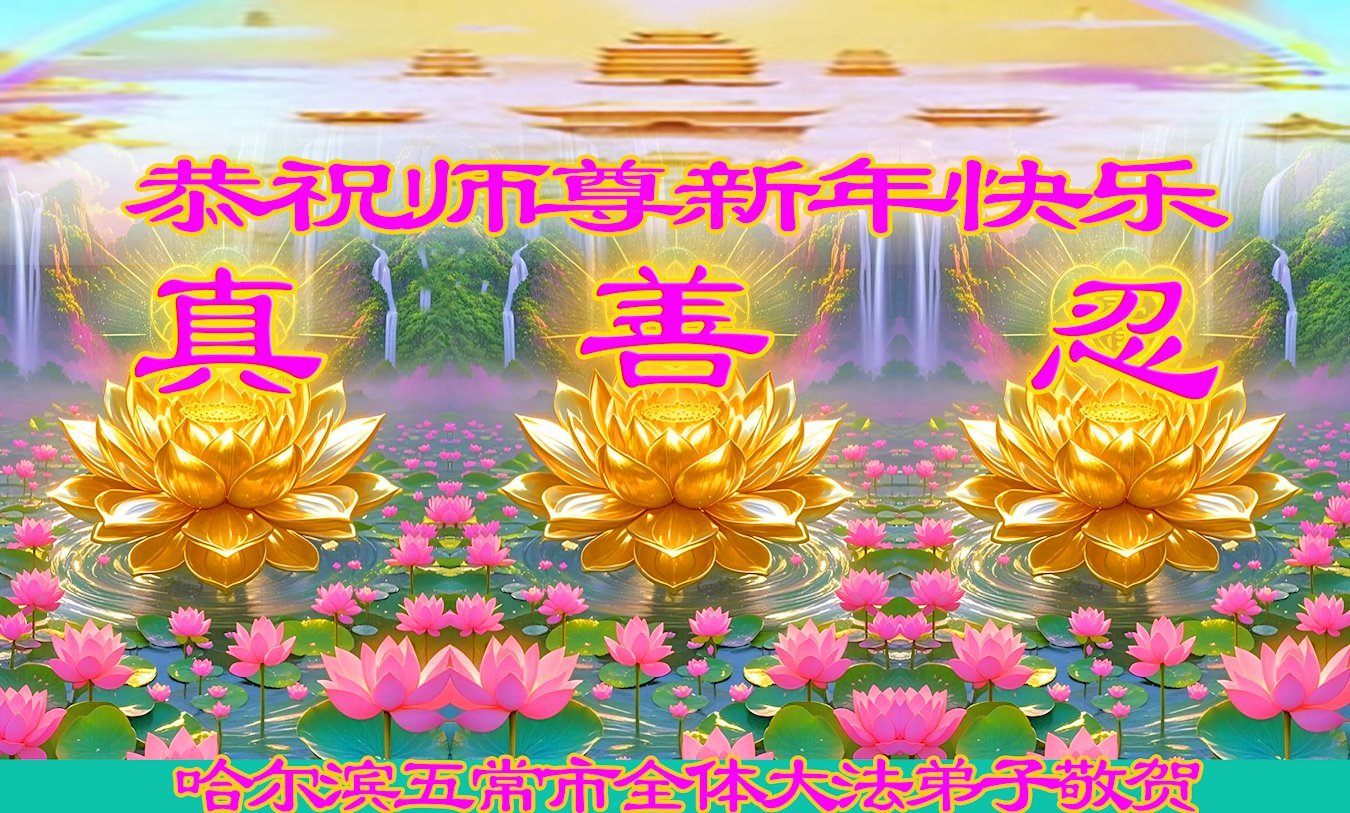 Praktykujący Falun Dafa z miasta Harbin życzą czcigodnemu Mistrzowi szczęśliwego Nowego Roku!