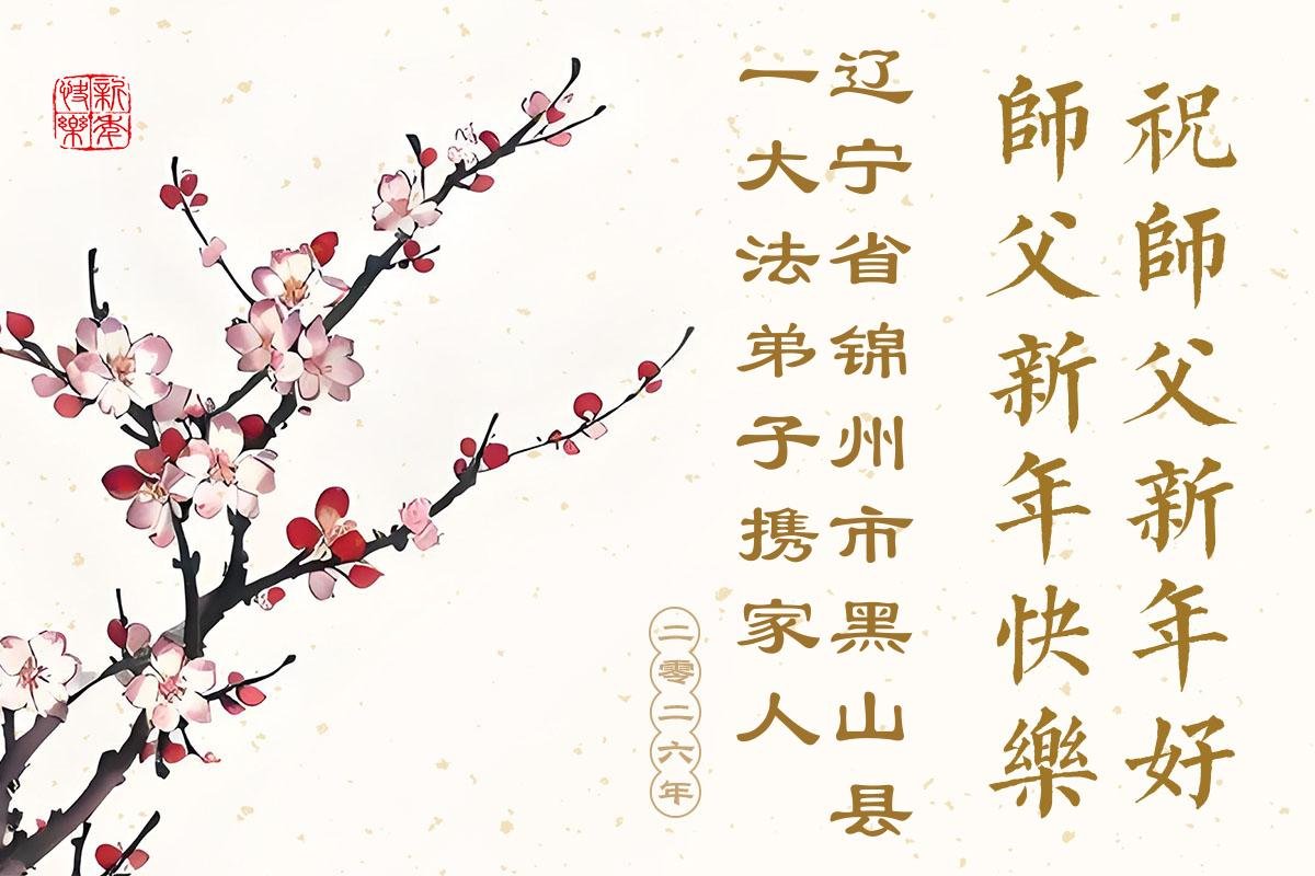 Praktykujący Falun Dafa z prowincji Liaoning życzą czcigodnemu Mistrzowi szczęśliwego Nowego Roku!