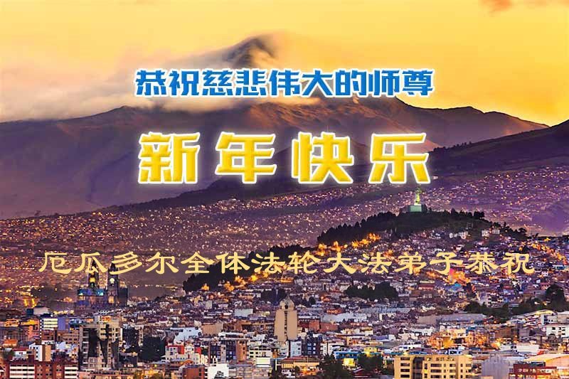 „Praktykujący Falun Dafa w Ekwadorze składają Mistrzowi serdeczne pozdrowienia i najszczersze życzenia noworoczne: Niech Mistrz będzie miał szczęśliwy Nowy Rok pełen radości” – napisali