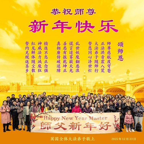 (Minghui.org) Dla praktykujących Falun Dafa nadejście Nowego Roku 2026 stanowi nową okazję do stania się lepszymi ludźmi poprzez dostosowanie się do zasad Prawdy, Życzliwości i Cierpliwości. Obejmuje to solidne studiowanie nauk Fa i stosowanie ich we wszystkim, z czym się spotykają. Z tej wyjątkowej okazji praktykujący z 59 krajów i regionów przesłali swoje życzenia do Minghui, aby podziękować Mistrzowi Li, założycielowi Falun Dafa, za tę możliwość i życzyć mu szczęśliwego Nowego Roku!