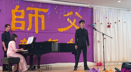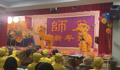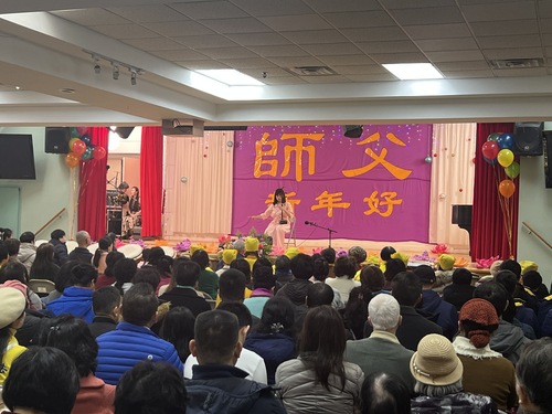 Ciepła i przyjazna atmosfera kontrastowała z zimowym chłodem na zewnątrz. Scena była udekorowana kwiatami, a kolorowe światła podkreślały transparent z napisem: „Szczęśliwego Nowego Roku, Mistrzu”. Sala była wypełniona praktykującymi z różnych grup etnicznych. W wieku od 90 lat do zaledwie kilku lat, od doświadczonych praktykujących po nowicjuszy, wszyscy z szacunkiem wykrzykiwali zgodnie: „Życzymy Mistrzowi szczęśliwego Nowego Roku! Falun Dafa jest dobre! Prawda, Życzliwość, Cierpliwość są dobre!”.
