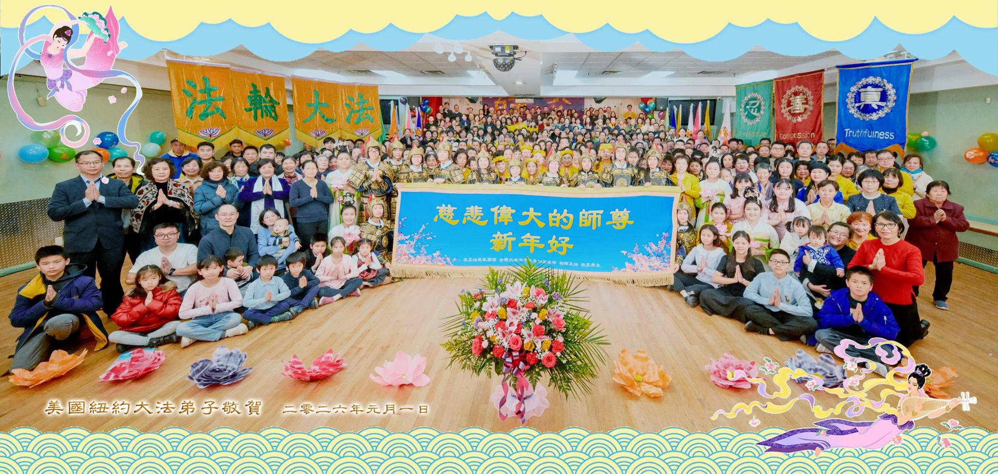 (Minghui.org) Praktykujący Falun Dafa zebrali się 28 grudnia 2025 r. w Centrum Tajwańskim we Flushing, aby złożyć życzenia noworoczne swojemu założycielowi, Mistrzowi Li Hongzhi. Wyrazili swoją wdzięczność Mistrzowi i świętowali nadejście nowego roku przy akompaniamencie bębnów, muzyki instrumentalnej, radosnych pieśni i tańców. Wyrazili swoją determinację, aby kontynuować kultywowanie z jeszcze większą gorliwością i nadzieją, że ludzie na całym świecie będą pamiętać: „Falun Dafa jest dobre, Prawda-Życzliwość-Cierpliwość są dobre”.