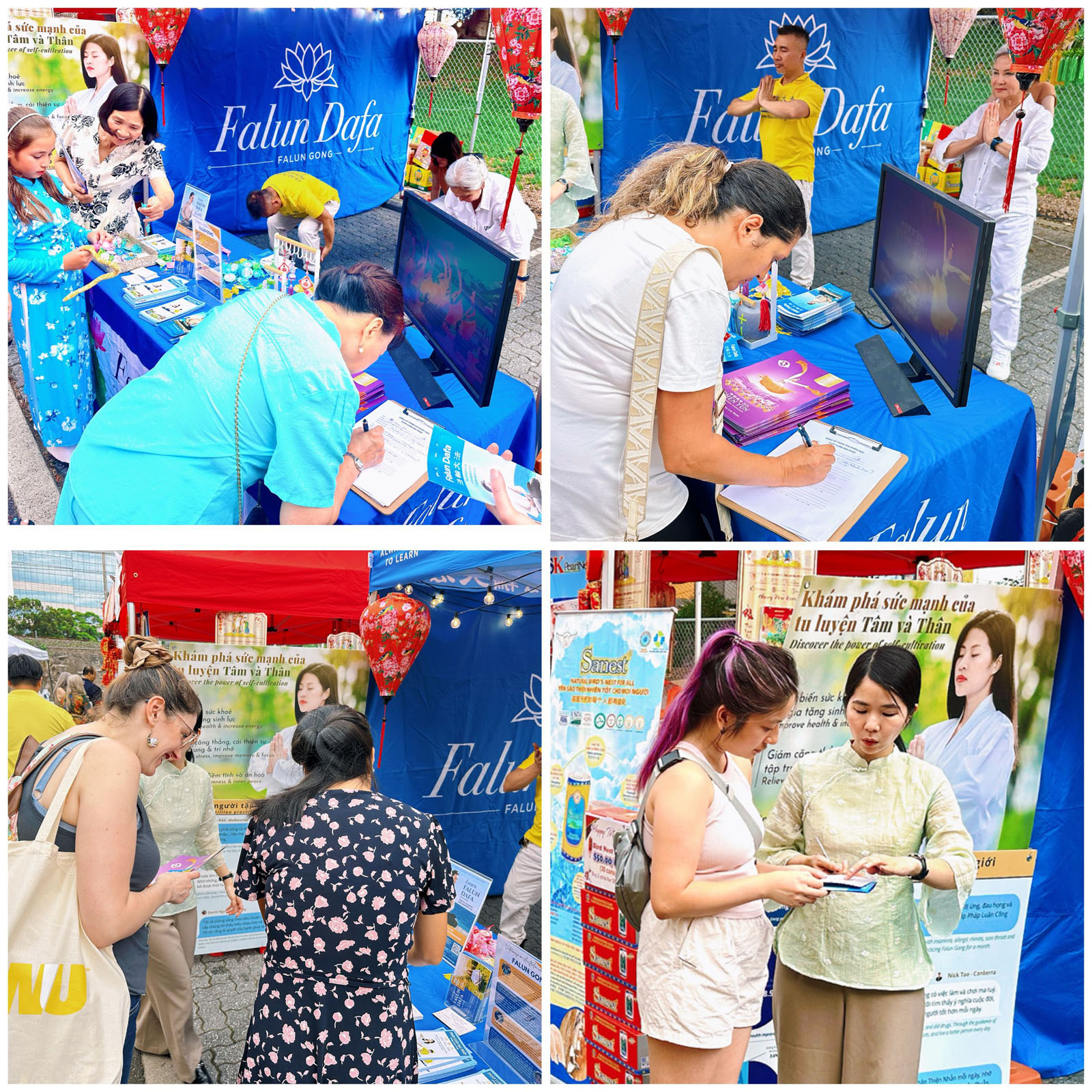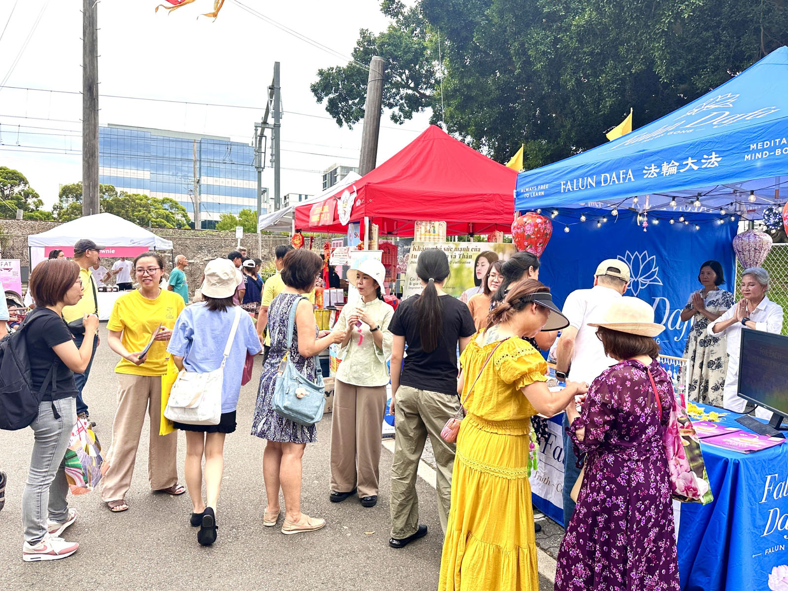 Wiele osób zatrzymywało się przy stoisku Falun Dafa, aby obejrzeć prezentację ćwiczeń i przeczytać plakaty. Po wysłuchaniu informacji o zasadach Prawdy–Życzliwości–Cierpliwości oraz o korzyściach płynących z praktykowania Falun Dafa, część z nich wyraziła zainteresowanie i pytała, jak można rozpocząć praktykę.