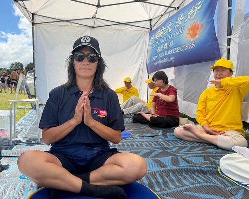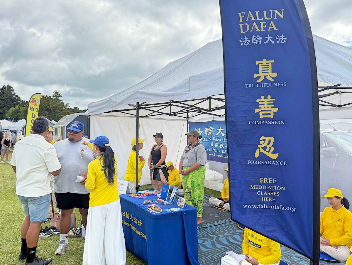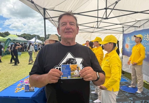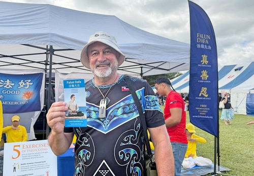 Maui Solomon, prawnik z wyspy Chatham, zatrzymał się przy stoisku Falun Dafa. Powiedział, że zaczął zgłębiać tajniki medytacji i pragnie na nowo odkryć siebie oraz nawiązać bardziej harmonijną relację ze światem poprzez kultywację.
