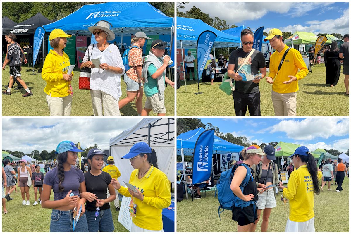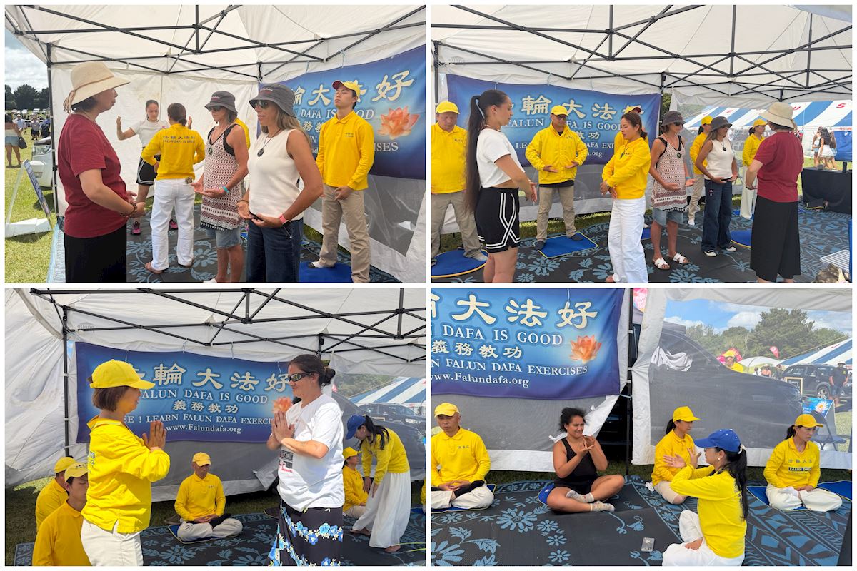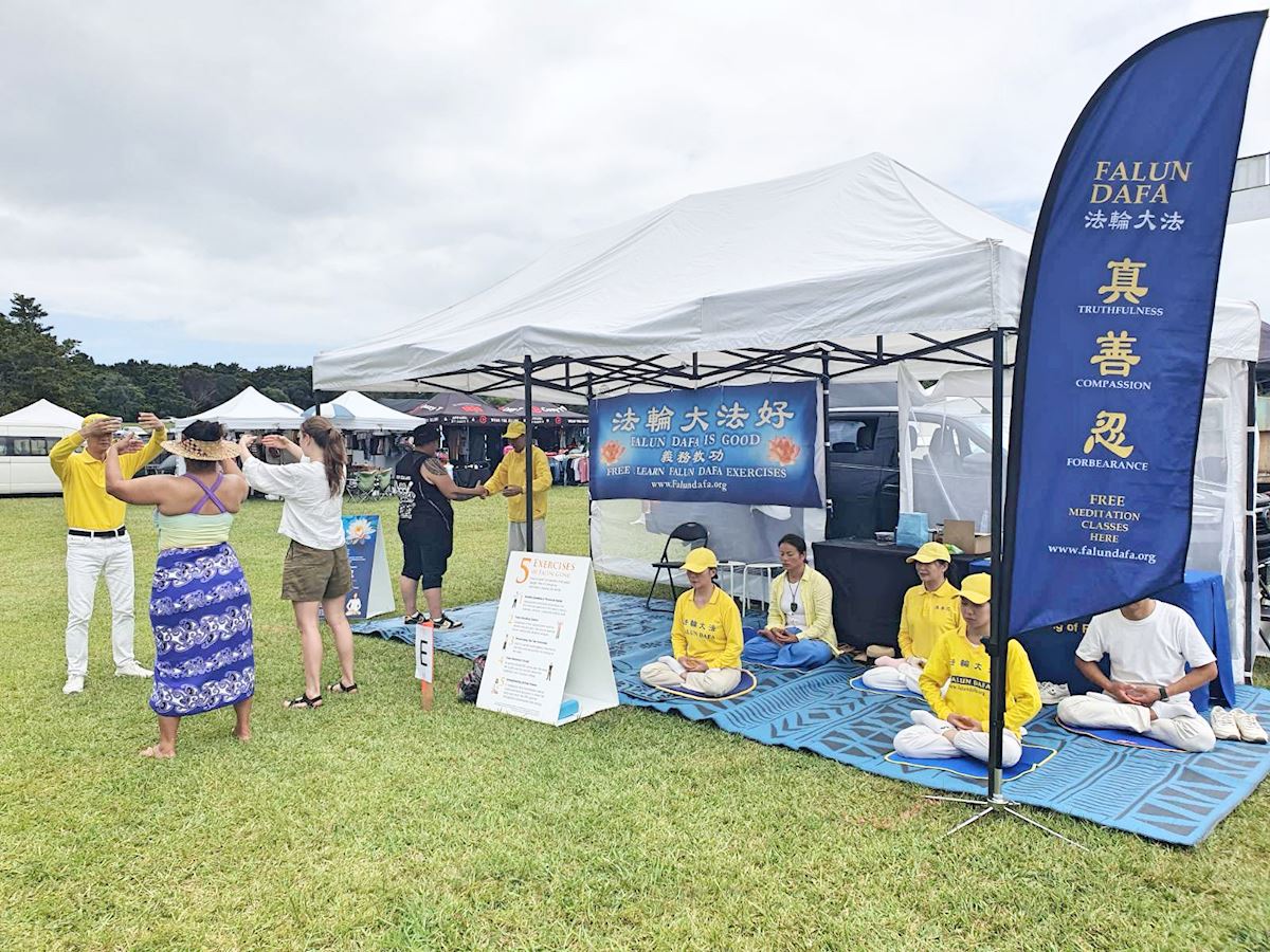 (Minghui.org) Praktykujący uczestniczyli w corocznych obchodach Dnia Waitangi w Zatoce Wysp w dniach 5-6 lutego 2026 roku. Rozstawili stoisko, zaprezentowali ćwiczenia i przedstawili Falun Dafa odwiedzającym festiwal.