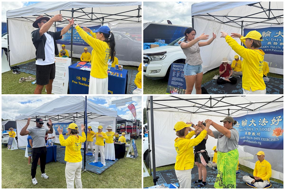 Wydarzenie uświetniły spektakularne występy sceniczne i ponad 150 straganów oferujących sztukę, rękodzieło, odzież i szeroki wybór potraw. W tętniącej życiem atmosferze festiwalu, spokojne stoisko Falun Dafa wyróżniało się. Stały strumień odwiedzających zatrzymywał się, aby uczyć się ćwiczeń i dowiedzieć się więcej o Falun Dafa. Wielu z nich mówiło, że mimo krótkiego okresu ćwiczeń, odczuli odnowione poczucie wewnętrznej równowagi i życzliwości.