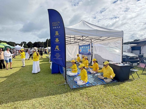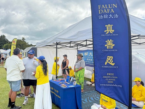 Stoisko Falun Dafa podczas obchodów Dnia Waitangi w Zatoce Wysp
