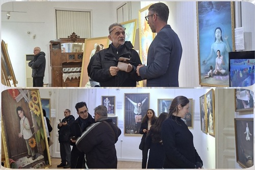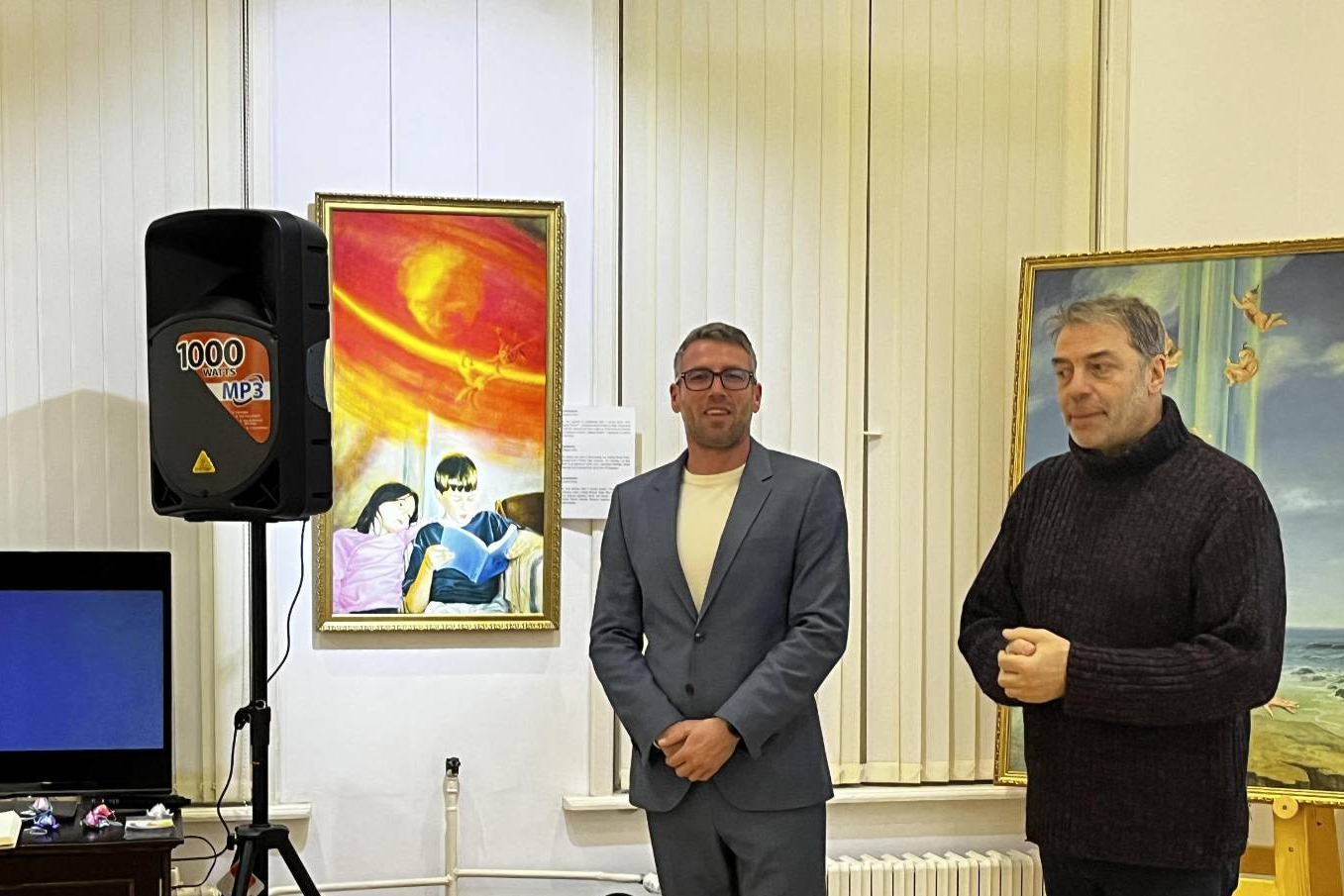 (Minghui.org) Wystawa Sztuka Zhen-Shen-Ren została otwarta w Ruse w Bułgarii 16 stycznia 2026 r. Wystawa obejmuje kolekcję 28 obrazów olejnych, wszystkie stworzone przez praktykujących Falun Dafa (zwanego również Falun Gong), którzy uciekli lub przeżyli prześladowania religijne ze strony Komunistycznej Partii Chin (KPCh).