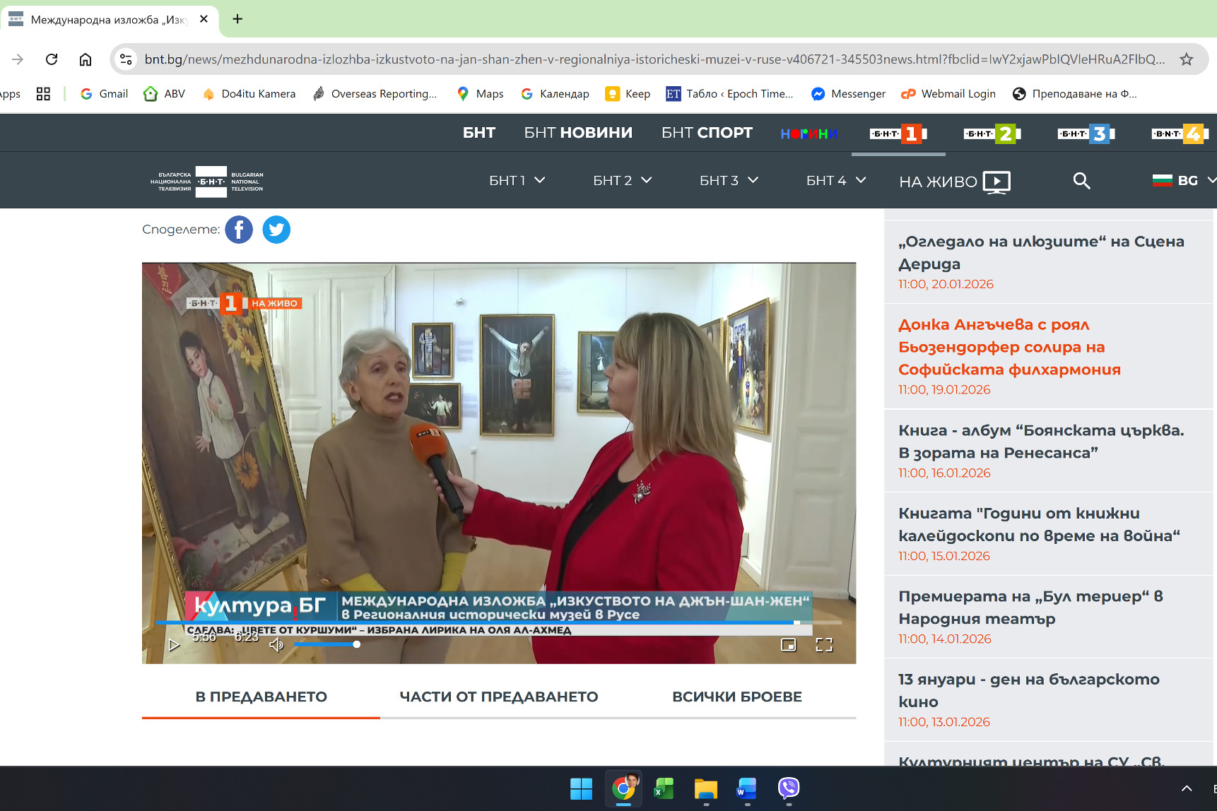 W poniedziałek, 19 stycznia 2026 r., bułgarska telewizja narodowa (BNT) transmitowała na żywo z Muzeum Historycznego w Ruse siedmiominutową rozmowę z praktykującą Katya Kalfova, która wyjaśniła cel i treść wystawy.