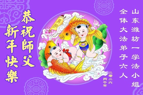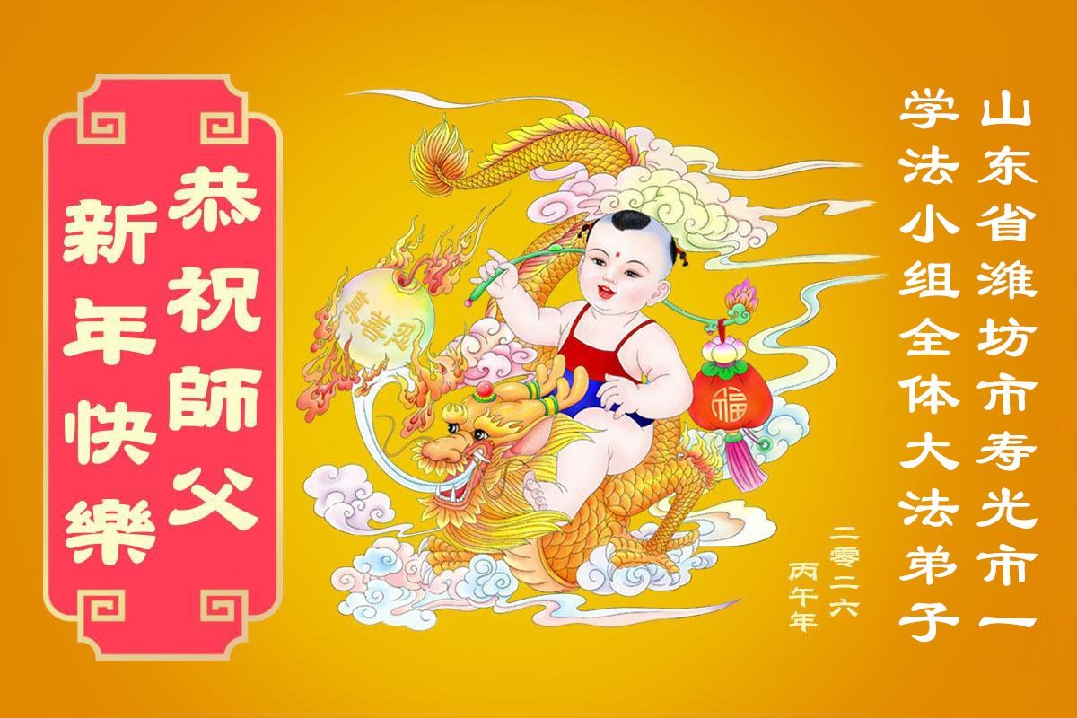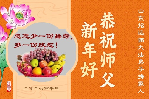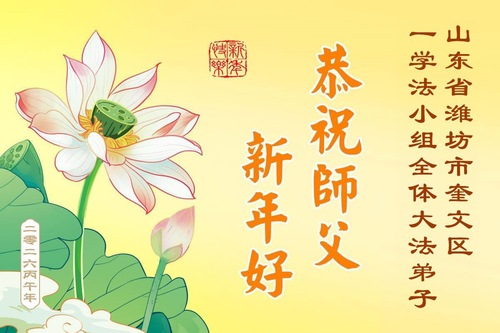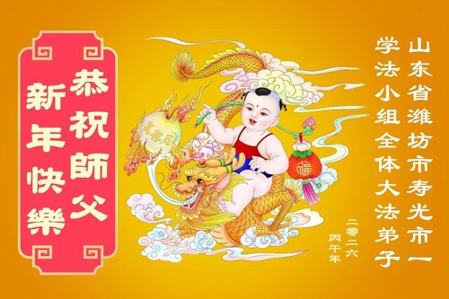 Praktykujący Falun Dafa w prowincji Shandong z szacunkiem życzą mistrzowi Li Hongzhi Szczęśliwego Chińskiego Nowego Roku (112 pozdrowień)
