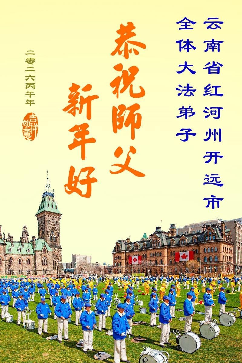 Praktykujący Falun Dafa z prowincji Kuejczou, Junnan, Qinghai oraz regionów autonomicznych Mongolii Wewnętrznej, Sinciang i Ningxia życzą Czcigodnemu Mistrzowi Szczęśliwego Chińskiego Nowego Roku!