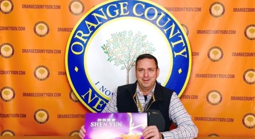 Starosta Neuhaus powiedział w filmie: „Jestem bardzo dumny, że mogę wręczyć moim przyjaciołom, którzy od 20 lat tworzą Shen Yun, oficjalną deklarację. Shen Yun ma szczególne znaczenie dla hrabstwa Orange, ponieważ ma swoją siedzibę w Dragon Springs. Z jednej grupy tanecznej rozrosło się do ośmiu, które opowiadają swoje piękne historie na całym świecie. Obecnie dają ponad 800 przedstawień rocznie. Widziałem ich wiele razy i spotkałem się z wykonawcami. Opowiadają oni wspaniałe historie o Chinach przed komunizmem. Jako hrabstwo Orange jesteśmy bardzo dumni, że możemy nazywać ich naszymi sąsiadami, ponieważ oni nazywają hrabstwo Orange swoim domem. Gratulacje! Niech będą kontynuować swoją działalność przez kolejne 20 lat i więcej, inspirując ludzi na całym tym wspaniałym świecie, który dzielimy. Dziękuję!”.