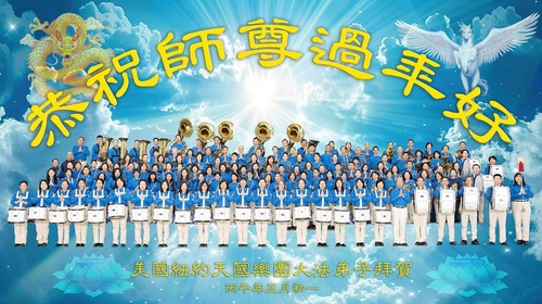 Noworoczne życzenia dla Mistrza od praktykujących z nowojorskiej orkiestry marszowej Tian Guo