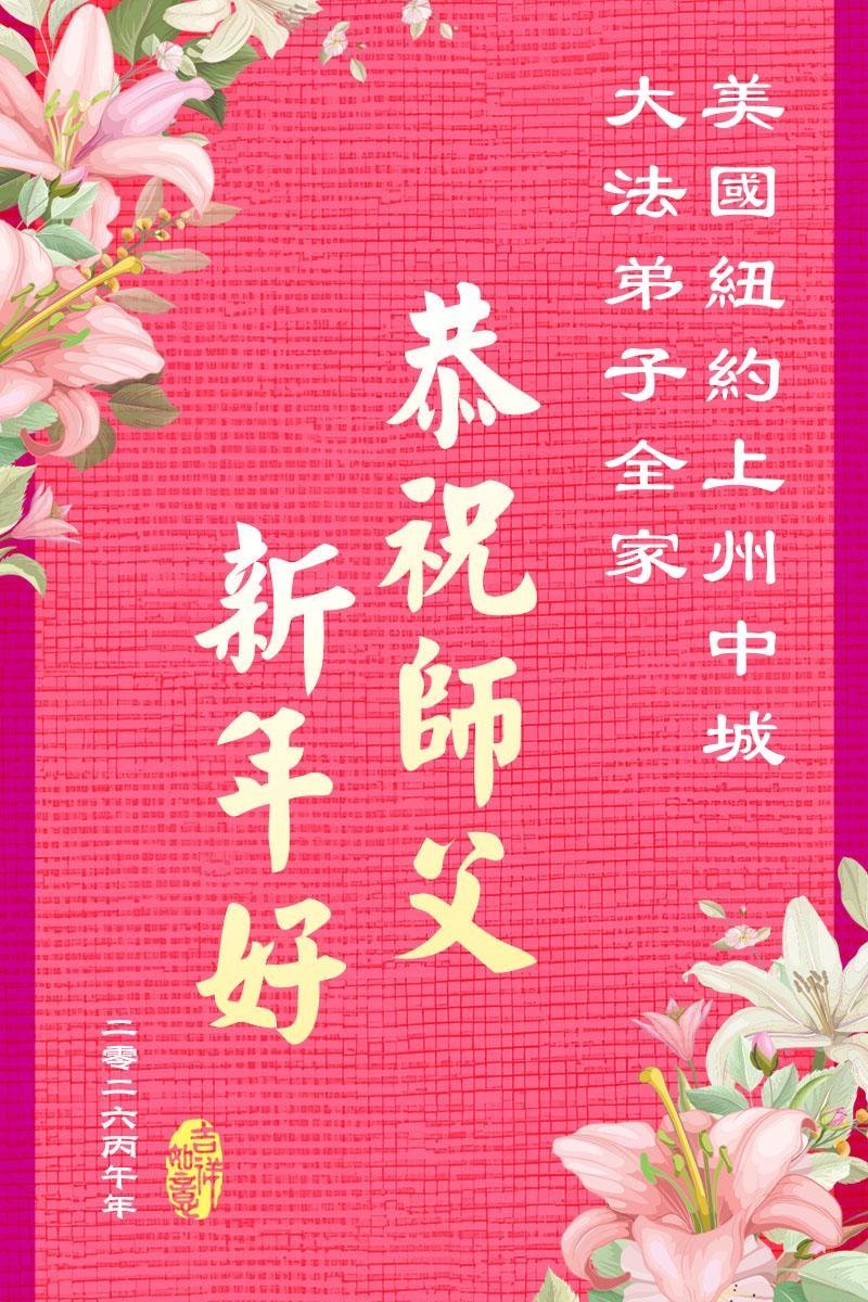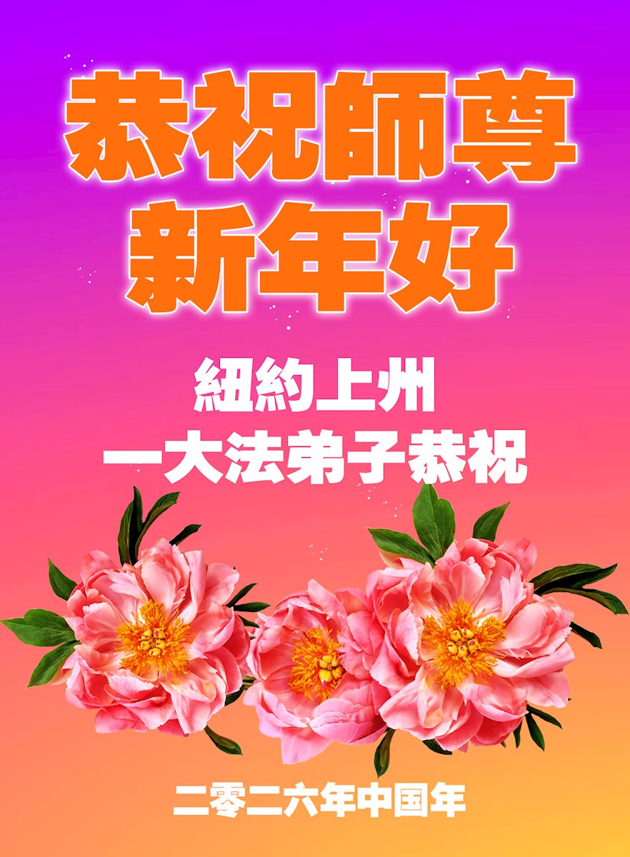 (Minghui.org) Praktykujący Falun Dafa z następujących miejscowości w Nowym Jorku przesłali Mistrzowi Li życzenia z okazji Chińskiego Nowego Roku: