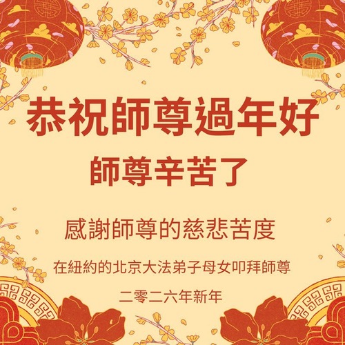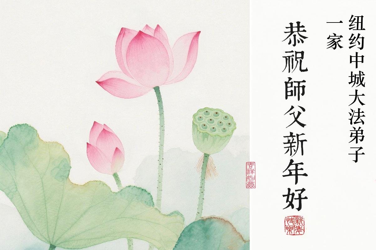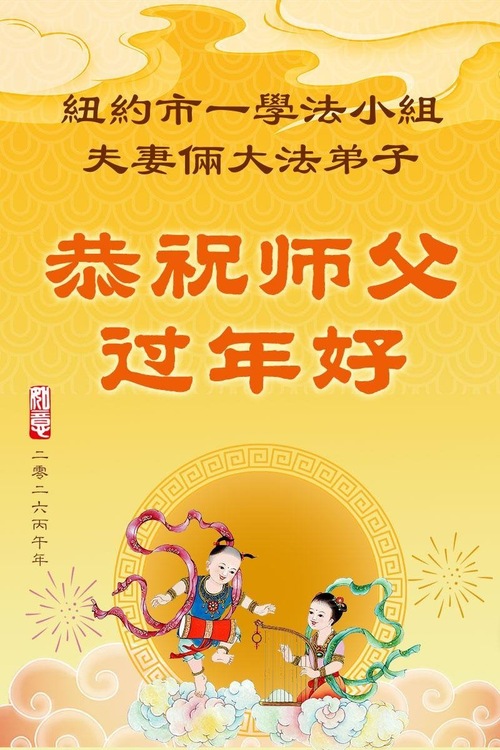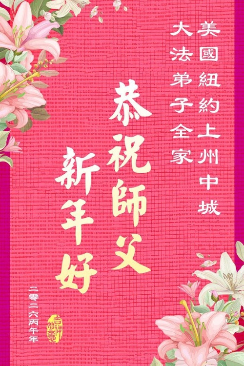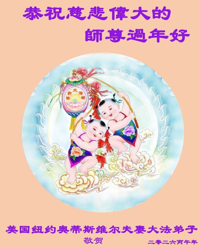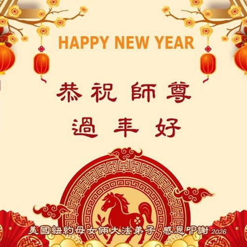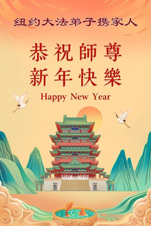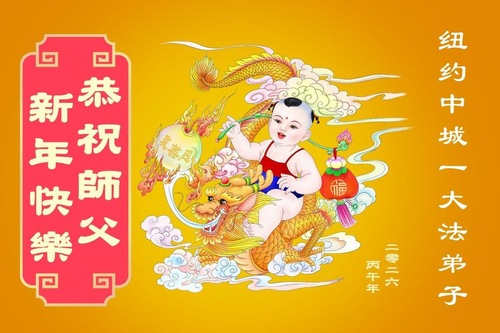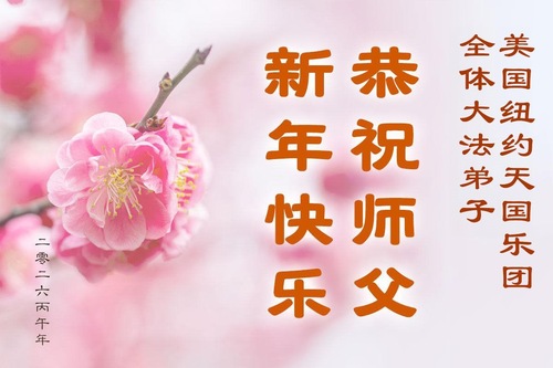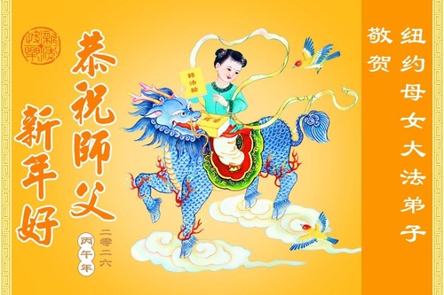 Noworoczne życzenia dla Mistrza od matki i córki praktykujących z Nowego Jorku, pochodzących z Changchun w prowincji Jilin w Chinach