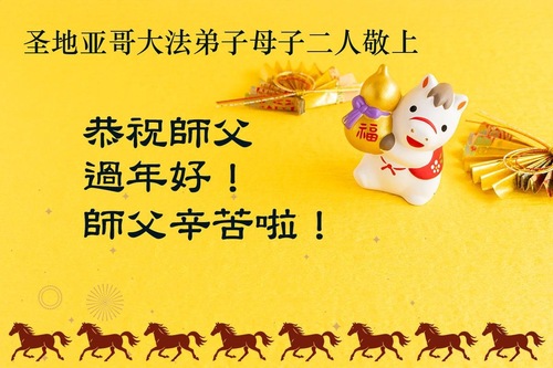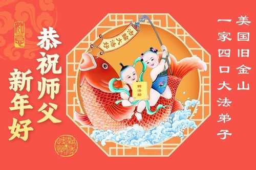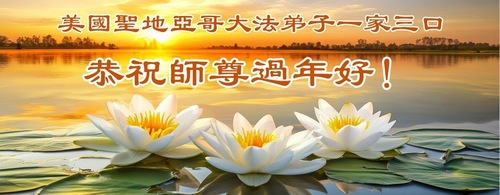Rodzina praktykująca z trzech osób z rejonu Zatoki San Francisco składa czcigodnemu Mistrzowi najserdeczniejsze życzenia z okazji Nowego Roku w Chinach!