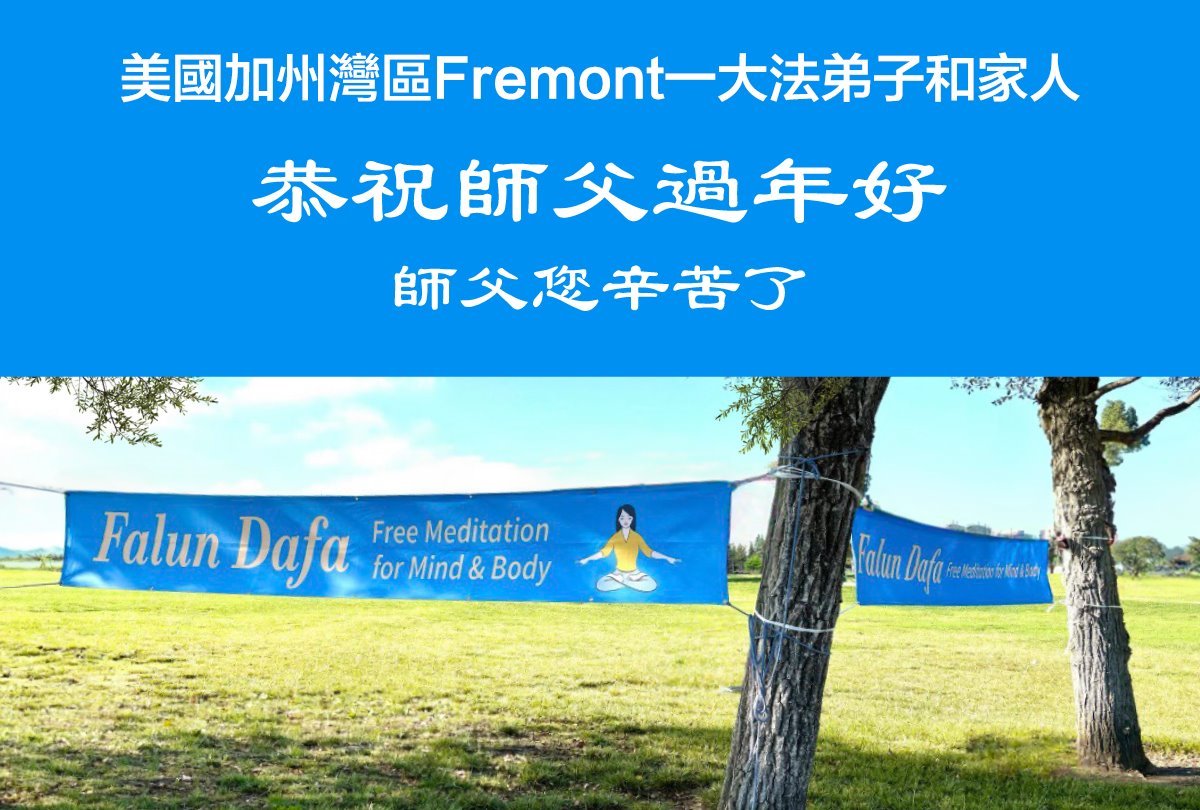Praktykujący z miasta Fremont w rejonie Zatoki San Francisco wraz z rodziną życzą czcigodnemu Mistrzowi szczęśliwego chińskiego Nowego Roku!