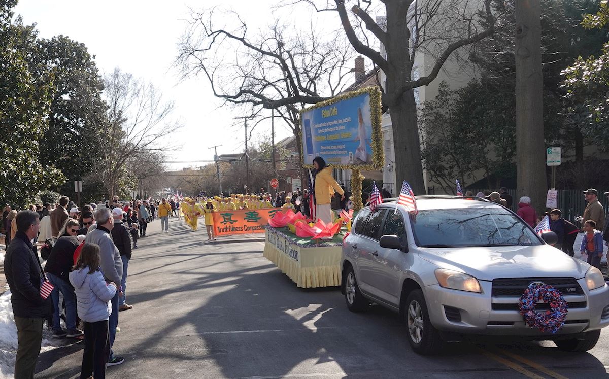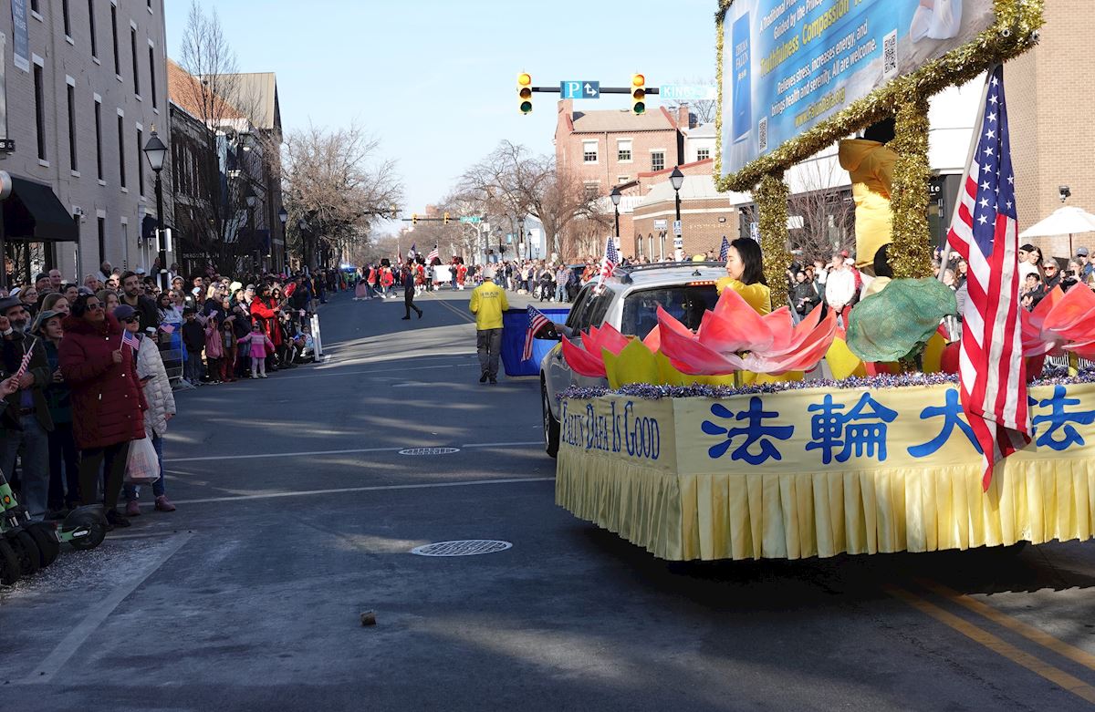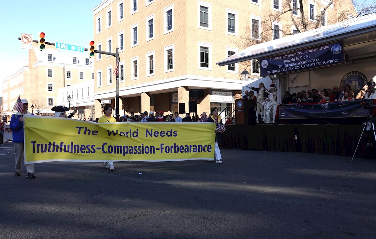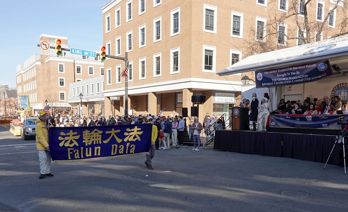 (Minghui.org) Praktykujący Falun Dafa zostali zaproszeni do udziału w paradzie z okazji urodzin George'a Washingtona, która odbyła się 14 lutego 2026 r. w Alexandrii w stanie Wirginia. Wielkie wydarzenie upamiętniało 250 rocznicę powstania Stanów Zjednoczonych oraz 294 urodziny George'a Washingtona, pierwszego prezydenta Stanów Zjednoczonych.