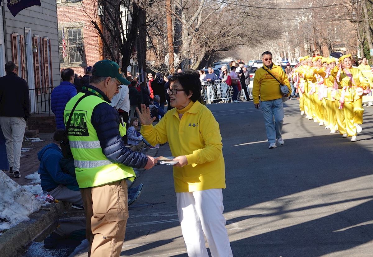 W paradzie wzięło udział ponad 40 praktykujących, w tym osoba w wieku 80 lat i kilkuletnie dziecko. Powiedzieli, że ponieważ Komunistyczna Partia Chin (KPCh) od dziesięcioleci prześladuje Falun Dafa i rozpowszechnia kłamstwa w Stanach Zjednoczonych i innych krajach, chcą powiedzieć ludziom prawdę o Dafa.