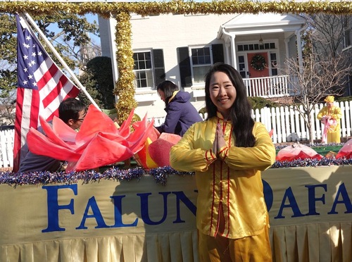 Emily Huang, młoda praktykująca, która prezentowała ćwiczenia na platformie, powiedziała: „Kiedy rozpoczęła się parada i platforma powoli ruszyła do przodu, zamknęłam oczy i zaczęłam prezentować ćwiczenia. Chociaż przez ostatni miesiąc pogoda była zimna, dzisiaj było wyjątkowo jasno i ciepło, a słońce świeciło nad nami.