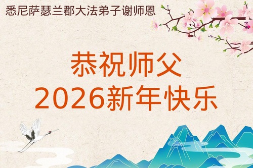 (Minghui.org) Aby uczcić Chiński Nowy Rok 2026, praktykujący Falun Dafa z Australii, w tym z Sydney, Canberry, Melbourne, Queensland, Brisbane i Perth oraz z Auckland i Hamilton w Nowej Zelandii, przesłali Mistrzowi Li życzenia noworoczne z okazji Chińskiego Nowego Roku: