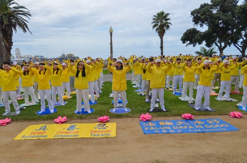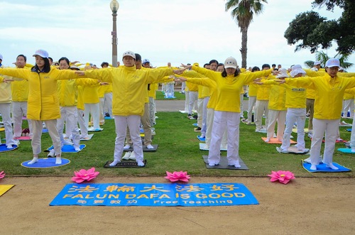 Dzień rozpoczęli od ćwiczeń, przy akompaniamencie melodyjnej muzyki. Park jest popularną atrakcją turystyczną, a odwiedzający z różnych krajów zgłębiają wiedzę o Falun Dafa. Niektórzy uczą się ćwiczeń na miejscu.